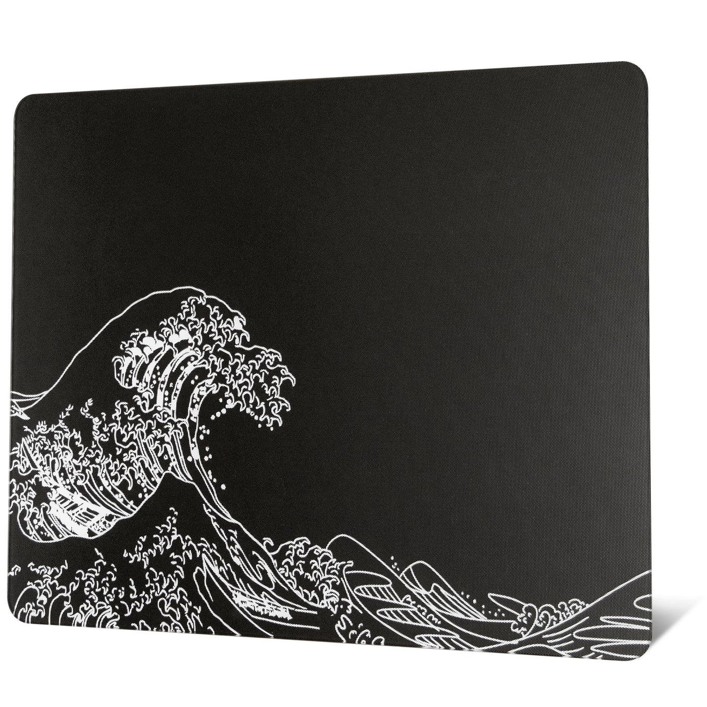 Glass Gaming Mouse Pad, Black Kanagawa Hard Mousepads For Gaming,Professional Large Mouse Mat 410Mm*310Mm, Special Glass Surface
