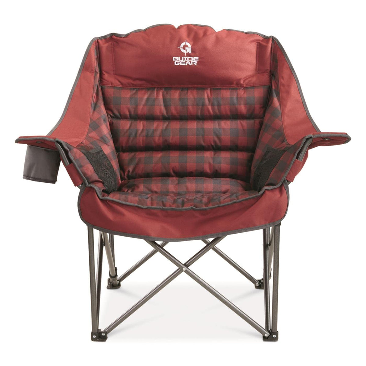 Guide Gear Oversized Extra Large Padded Camping Chair, Portable, Folding, Large Camp Lounge Chairs For Outdoor, Adults, Men And Women, Heavy-Duty 400 Pound Capacity, With Cup Holder Red Plaid