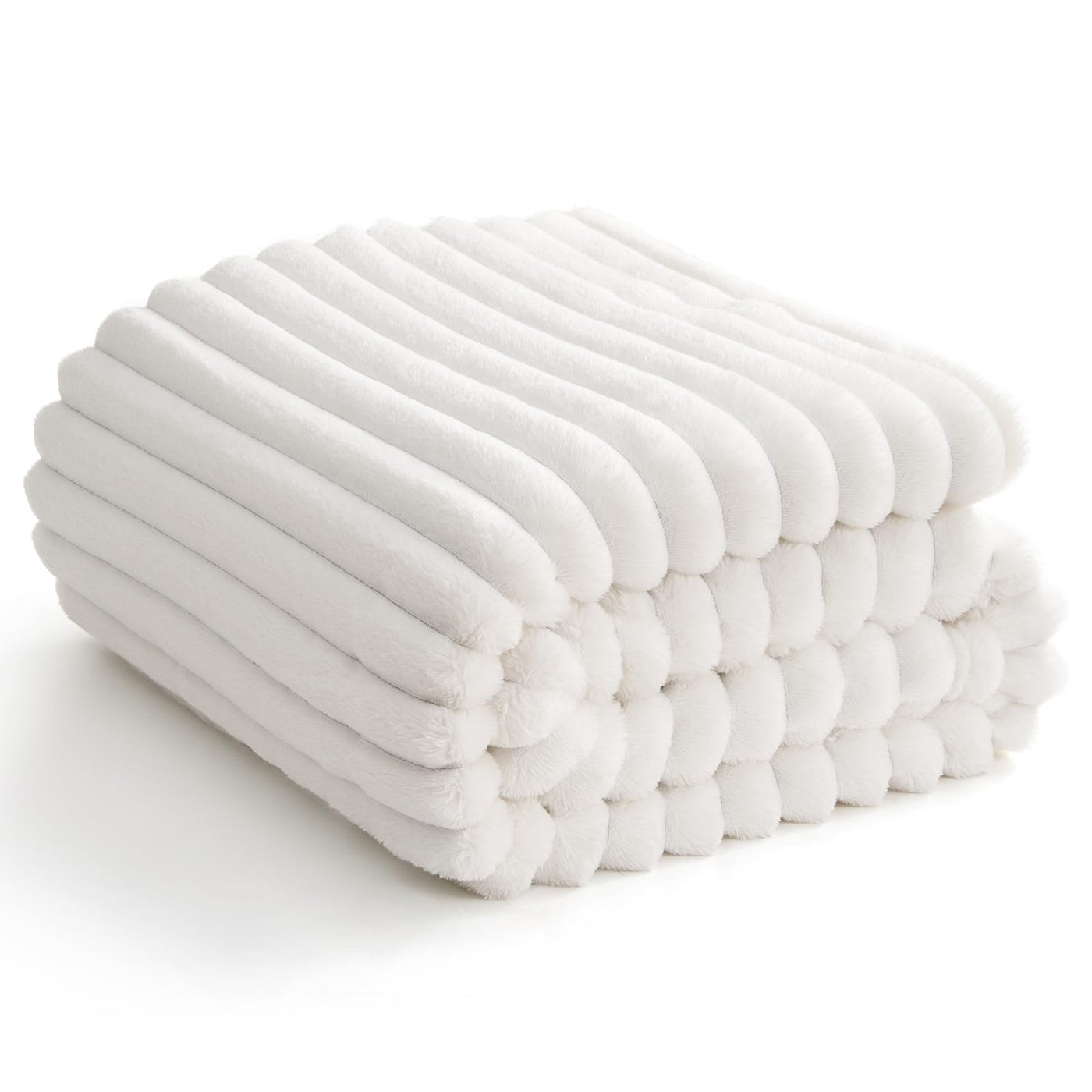 Himeet Fuzzy Blanket Fleece Blanket White Cozy Throw Blanket For Couch Lap Blanket Fluffy Velvet Plush Soft Ribbed Design Wash U