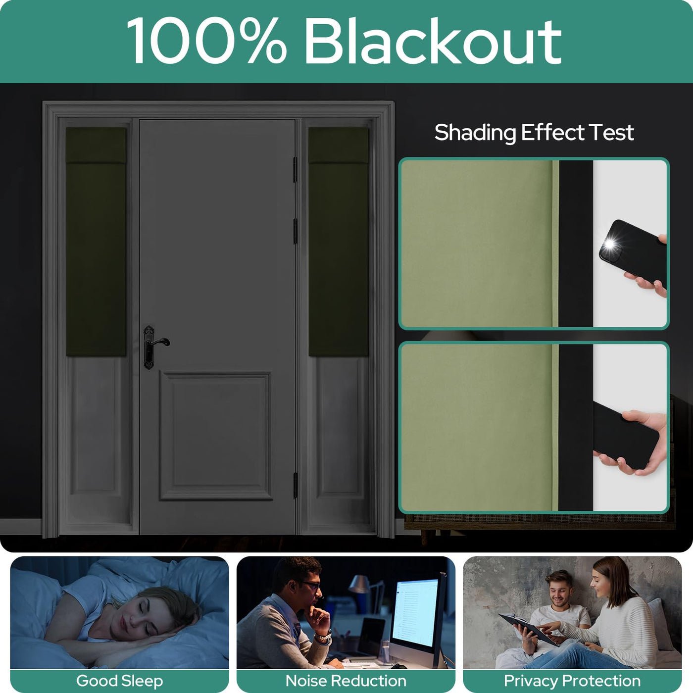 Homeideas 100% Blackout Sidelight Curtains For Front Door, Side Door Window Curtains, Front Door Curtains For Small Window, Thermal Insulated Door Window Covering, (1 Panel, W12 X L54, Sage Green)