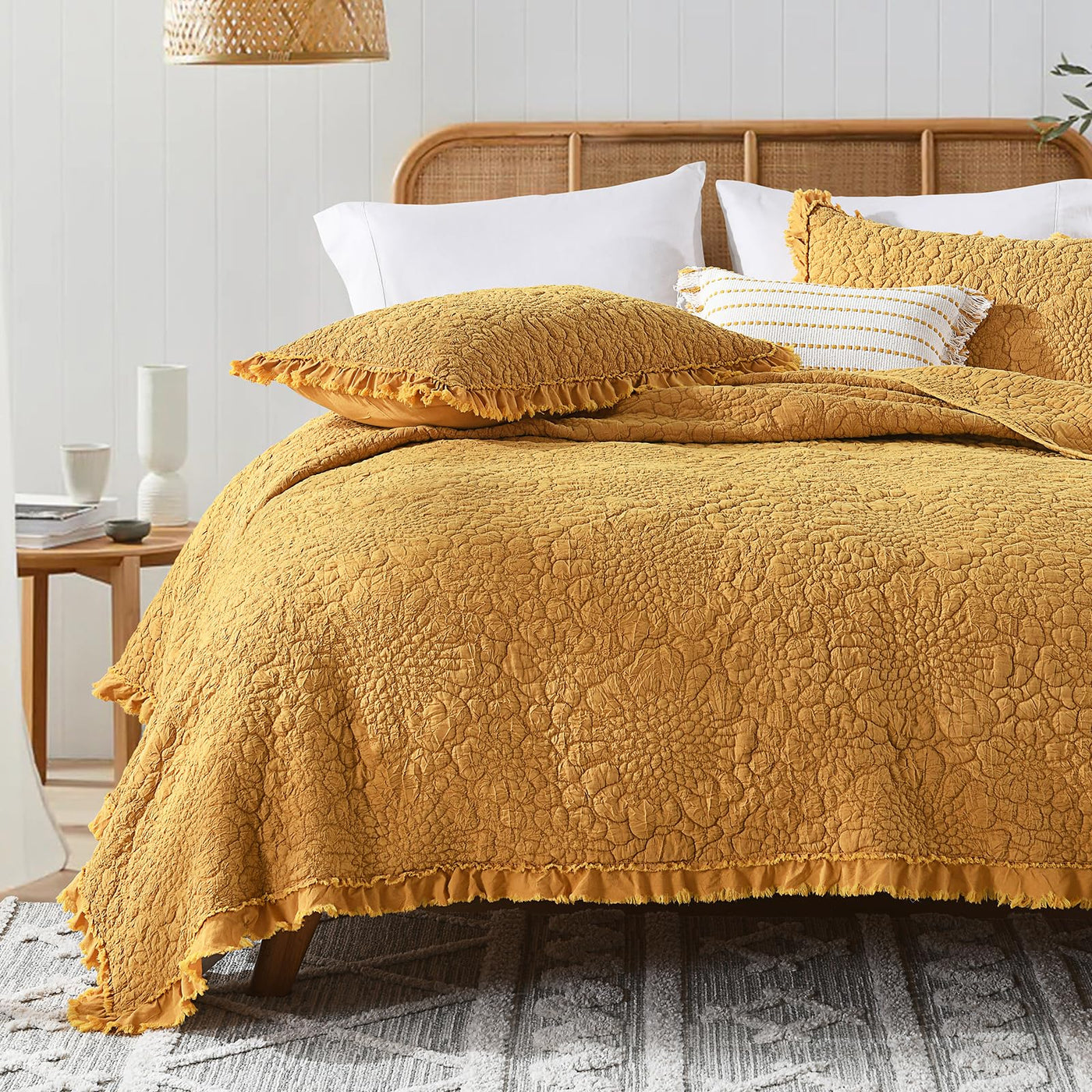 Crinkled Texture &Amp; Stone-Washed Microfiber: This Series Quilt Are Stone-Washed, Which Gives The Fabric Its Soft And Plush, Pleasingly Rumpled Hand. Crinkled Texture Appearance Add Chic Rustic Look Enhance Bedroom'S Look. Elegance Flower Design With Ruffled Edges:&Nbsp; This Floral Stitching Reversible Quilt, Flower Quilted Pattern On Front And Back. Added Ruffled Fringe Both On Bedding Set And Shams, Makes Your Room Stylish And Fashion Look.&Nbsp; Multiple Occasions: This Horimote Home Quilt Bedding Set Is Made Of 100% Microfiber Polyester, Suitable For All Season. You Can Use It With A Comforter To Keep Warm In The Colder Seasons Or As A Quilted Coverlet In The Summer Or In An Air-Conditioned Room. This Breathable Quilt Bedding Set Will Make A Great Gift For Hot Sleepers.