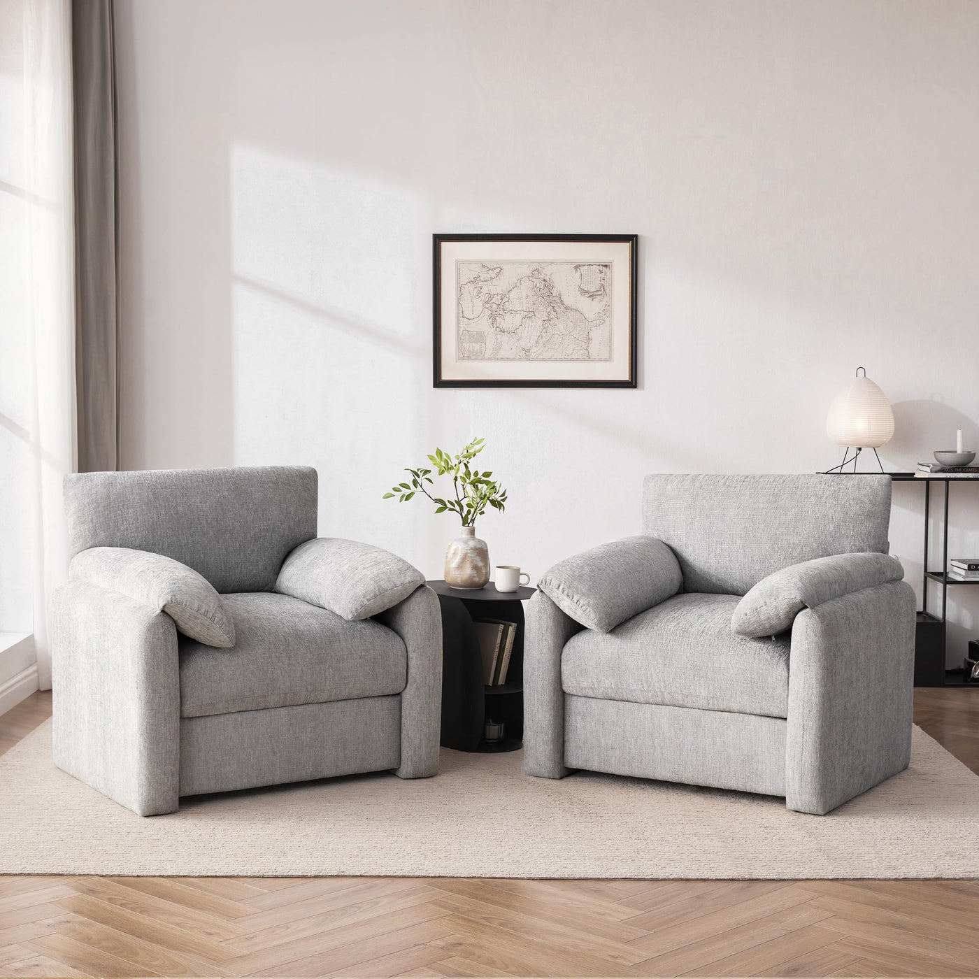 Enhance Your Living Space With This Chairs Living Room, Featuring A Sleek And Contemporary Design. Its Arched Backrest And Curved Armrests Provide A Sophisticated Touch That Blends Seamlessly Into Any Living Room, Bedroom, Or Study, Adding Both Elegance And Charm. Built With A Solid Wooden And Iron Frame, This Big Comfy Chair Is Designed For Lasting Stability And Support. The High-Density Foam Padding In The Backrest, Armrests, And Seat Ensures Reliable Comfort For Everyday Use, Making It A Practical Addition To Your Home. Measuring 38.58' W X 33.07' D X 34.25' H With A Seat Size Of 20.5' W X 20.5' D, This Living Room Chairs Clearance Offers Ample Space And Supports Up To 400 Lbs. Its Generous Dimensions Accommodate Various Body Types, Providing A Spacious And Comfortable Seating Experience. Upholstered In Soft Chenille Fabric, This Oversized Lounge Chair Features A Foam-Filled Backrest And Seat Cushion Crafted With High-Density Foam And Quality Springs. This Combination Enhances Your Comfort And Helps Relieve Fatigue From Long Periods Of Sitting. All Components Of The Armchair Are Included In One Box. Please Inspect The Package Upon Delivery To Ensure That All Parts Are Present For A Complete And Easy Assembly Process.