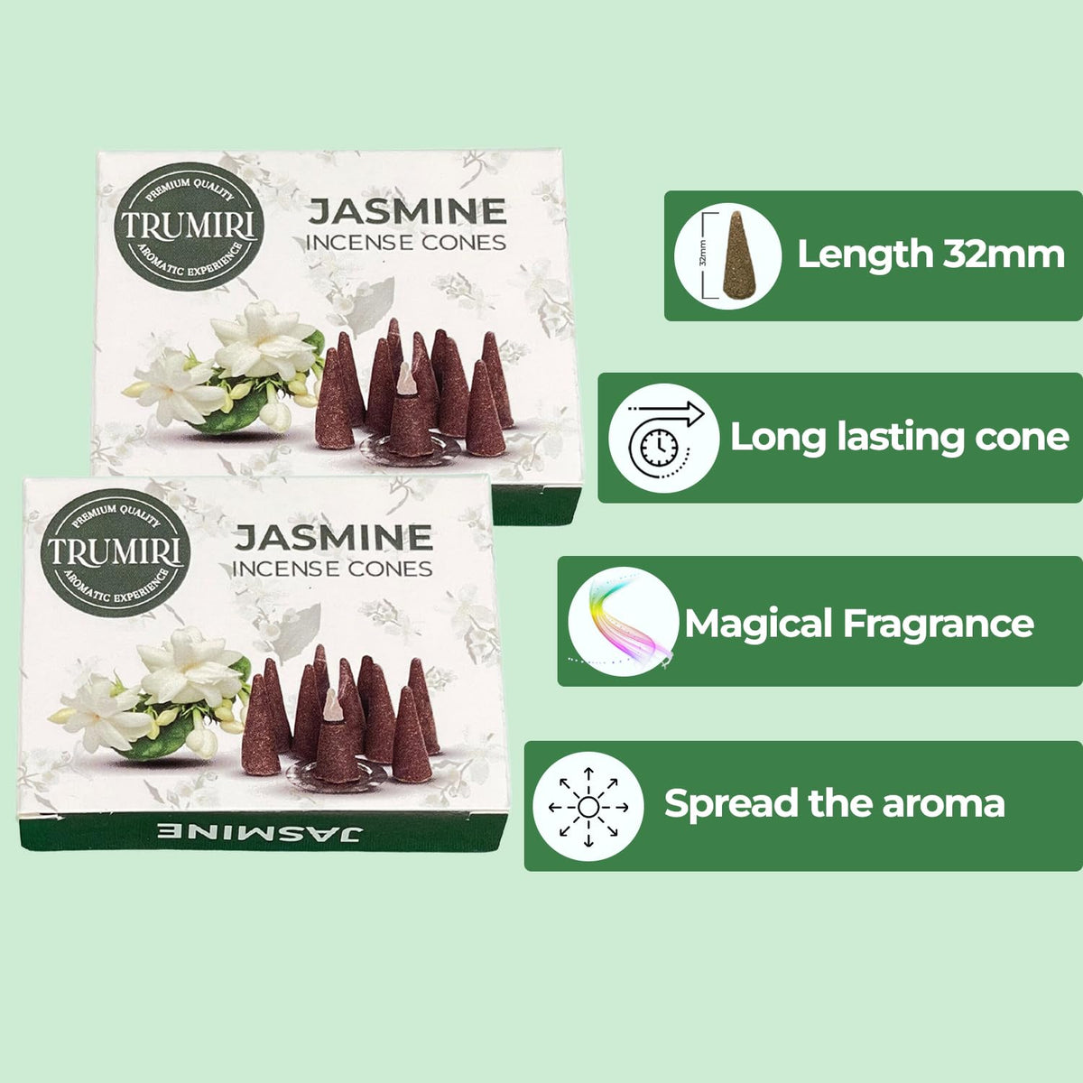 TRUMIRI Jasmine Incense Cones - Dual Pack of 20 Scented Cone Incense - Aromatic Home Fragrance - Relaxing and Calming Scents