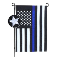 Jushen Thin Blue Line Garden Flag Embroidered 12X18 Inch, Deluxe Embroidered Stars And Sewn Stripes Police Garden Flag, Back The