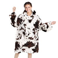 Kivee Wearable Blanket Hoodie Cow Print Oversized Fleece Sweatshirt Blanket With Giant Pocket Warm Cozy Hooded Blanket For Adult