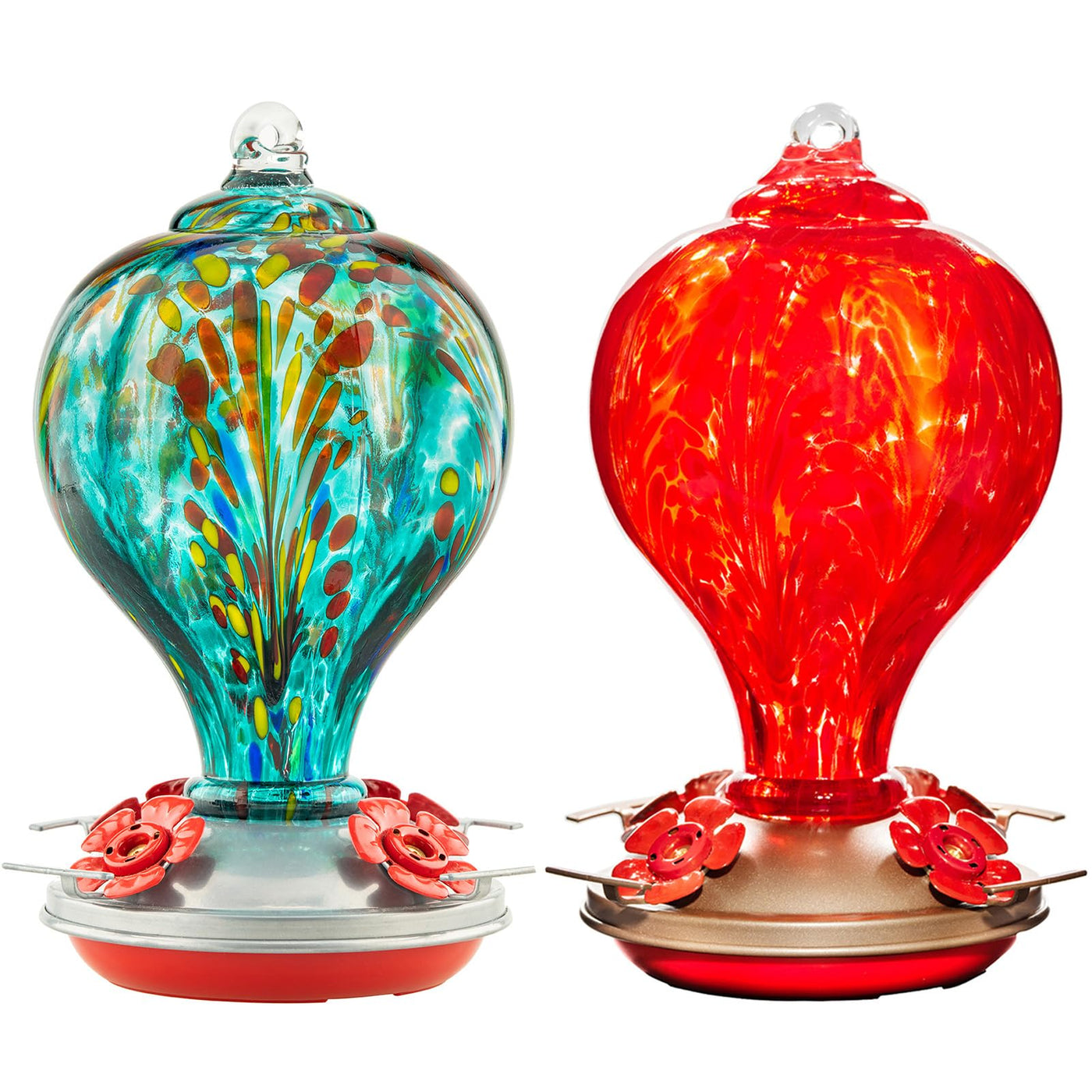 Why Our Hummingbird Feeder? 1. Each Is A Craftsmanship And Quality Hand-Blown Glass Hummingbird Feeder, The Air Bubbles On The Glass Surface Are Sufficient To Prove. Also, All Our Hummingbird Feeders Are With Perches For The Hummers To Rest On, And They Love This So Much That They Will Bring Their Hummingbird Homies By To Get A Drink. 2. All The Hummingbird Feeders Are Made From Lead-Free And Recycled Materials. This Not Only Ensures The Safety Of Hummingbirds, But Also Helps Preserve Our Environment For Future Generations. Glass Is Thick And Substantial, And The Pattern Is Gorgeous. These Blown Glass Hummingbird Feeders Are For Outdoors And The Colors Do Not Fade In The Sunlight. It A Functional And Attractive To The Hummers. 3. Beautifully Crafted Has Added To The Beauty Of Your Garden. Because Each Having A Unique Color Ratio, Pattern, And Shape. Especially You Will Get A Wonderful Experience When The Sun Hits It, The Glass Hummingbird Feeder Sparkles And Vibrant Colors, Attract Hummingbirds As Flowers, All Hummers Love It. 4. A Perfect Gift Idea All Year Long, And Beautiful Addition To The Yard. Great Hummingbird Gifts For Women Or Any Garden Lover, And Also Works Well As The Mother'S Day Gifts For Mom And Grandma. Try Gift To The Beautiful Hummingbird Feeders For Christmas For Your Family Or Your Friends, They Will Be Absolutely A Hit.' Easy To Clean And Fill '1.Designed With The Wide-Mouth Opening Of The Hummingbird Feeder, It'S Easy To Fill The Nectar. 2.Easy To See The Volume Through The Transparent Glass At Any Time When Filling The Nectar. 3.Easy To Disassemble And Clean, With A Small Brush In The Package. It'S Used To Conveniently Clean The Base Feeding Ports Separately. 4.The S Hook And Hemp Rope Are Used To Adjust The Hanging Height, And Ant Moat Is Used To Protecting Nectar.' What'S In The Package? '1 X Hummingbird Feeder 1 X Ant Moat 1 X S Hook 1X Hemp Rope 1 X Small Cleaning