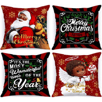 Lanpn Black Santa 20X20 Christmas Pillow Covers Set Of 4, Black African American Claus Girl Decorative Holiday Throw Pillow Case