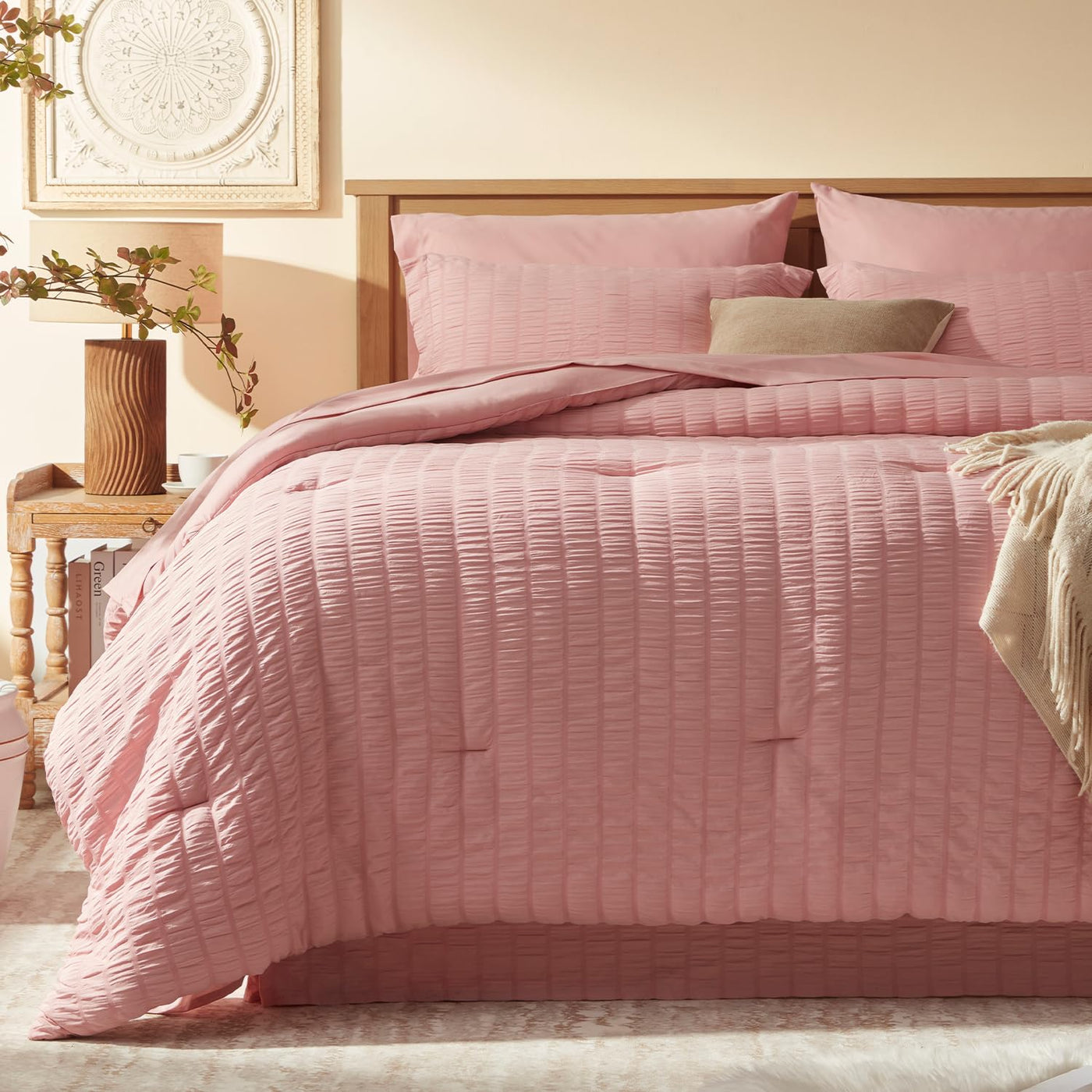 Laojin Balhen Twin Comforter Set 6 Pieces, Seersucker Bed In A Bag Twin, Pink Comforter With Sheets, Comforters Twin Size Beddin