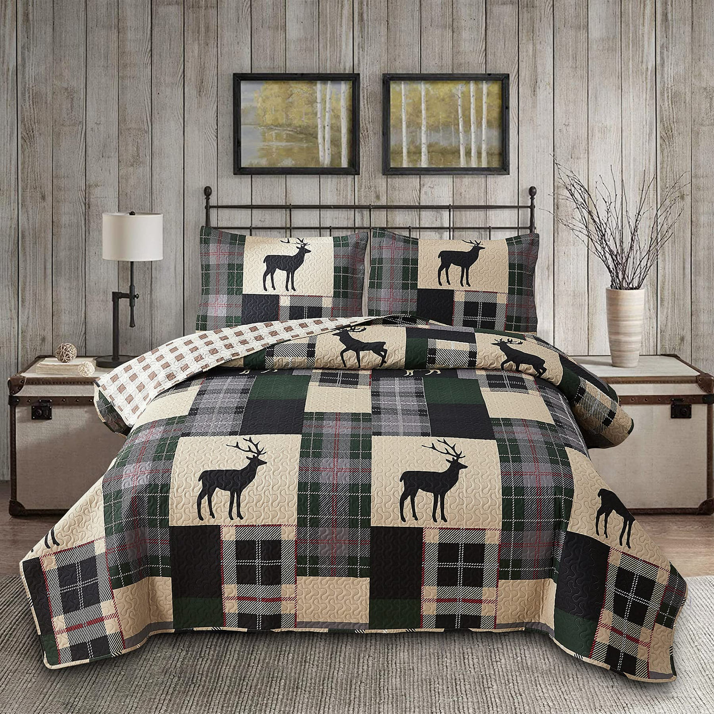 Lodge Bedspread Set Twin Size Rustic Cabin Quilt Set Deer Bedding Sets Lightweight Coverlet Reversible Bedspreads Elk Moose Prin