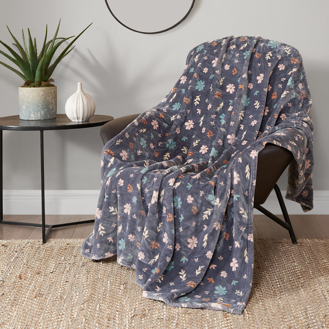 Lucky Brand Luxurious Fuzzy Blanket For Sofa Or Bed, Tossed Blooms Plush Throw Blanket, 50' X 70', Gray Floral