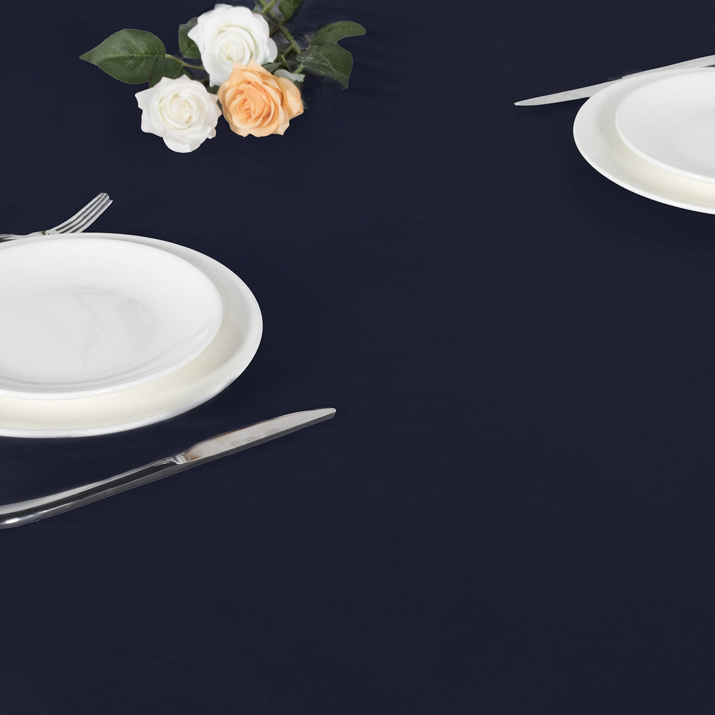 Lushvida Vinyl Fitted Table Cover Elastic Edged Plastic Table Cover… (Navy, Best For Up To 45'-56' Round)