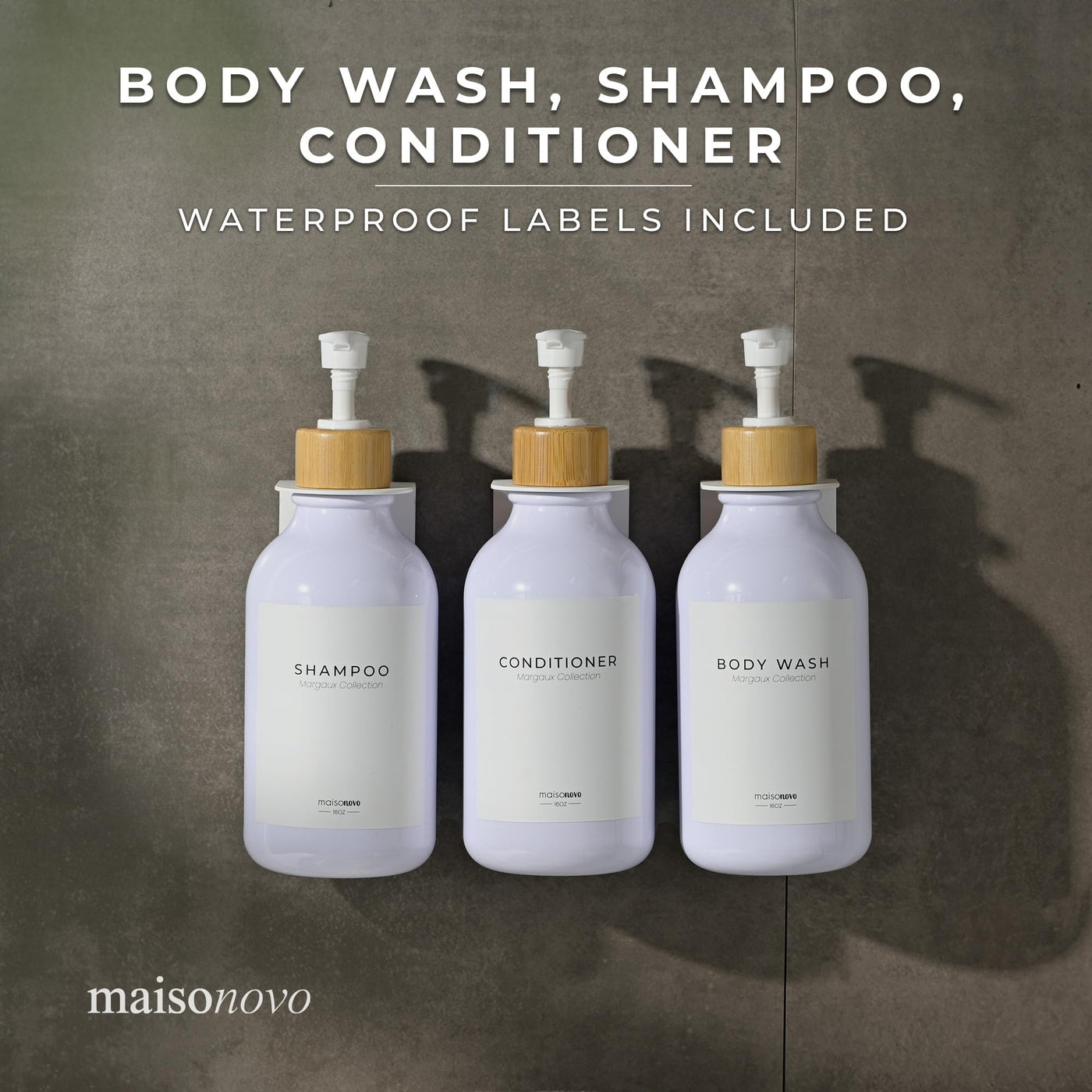 Q: Can I use the dispensers for products other than shampoo and conditioner?A: Yes, the MaisoNovo dispensers are versatile and can be used for various liquid products such as hand soap, body wash, and lotion. The package includes waterproof labels that allow you to clearly identify each product you store in the dispensers.