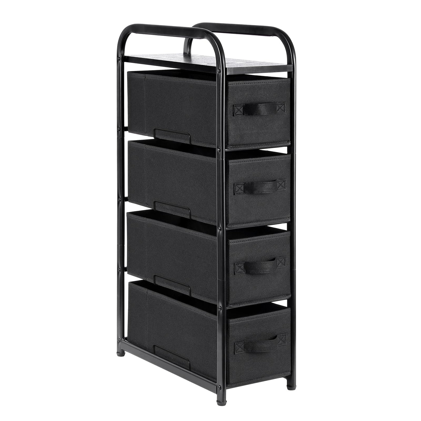 Max Houser 4 Drawer Narrow Dresser Fabric Storage Tower Vertical Slim Storage Chest Organizer Nightstand Side/End Table Small Standing Organizer Removable Drawers Wood Top For Bedroom, Bathroom(Black)