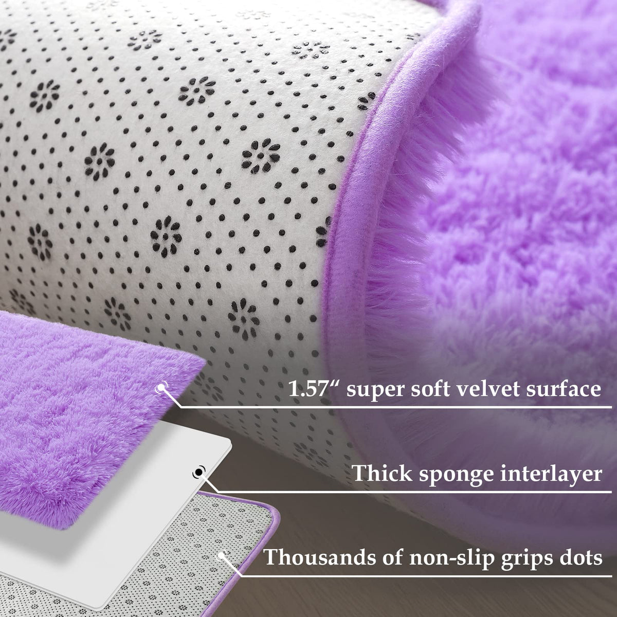 Q: What color options are available for this rug?A: While this listing features a vibrant purple color, the Merelax Modern Soft Fluffy Rug is available in various colors and sizes to fit your decor needs.