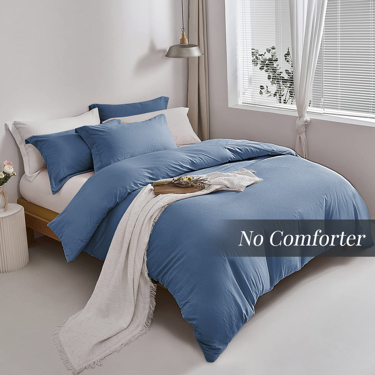Mildly Super Soft Duvet Cover - 100% Washed Microfiber Light Denim Comforter Cover Set 3 Pieces With Zipper Closure & Corner Tie