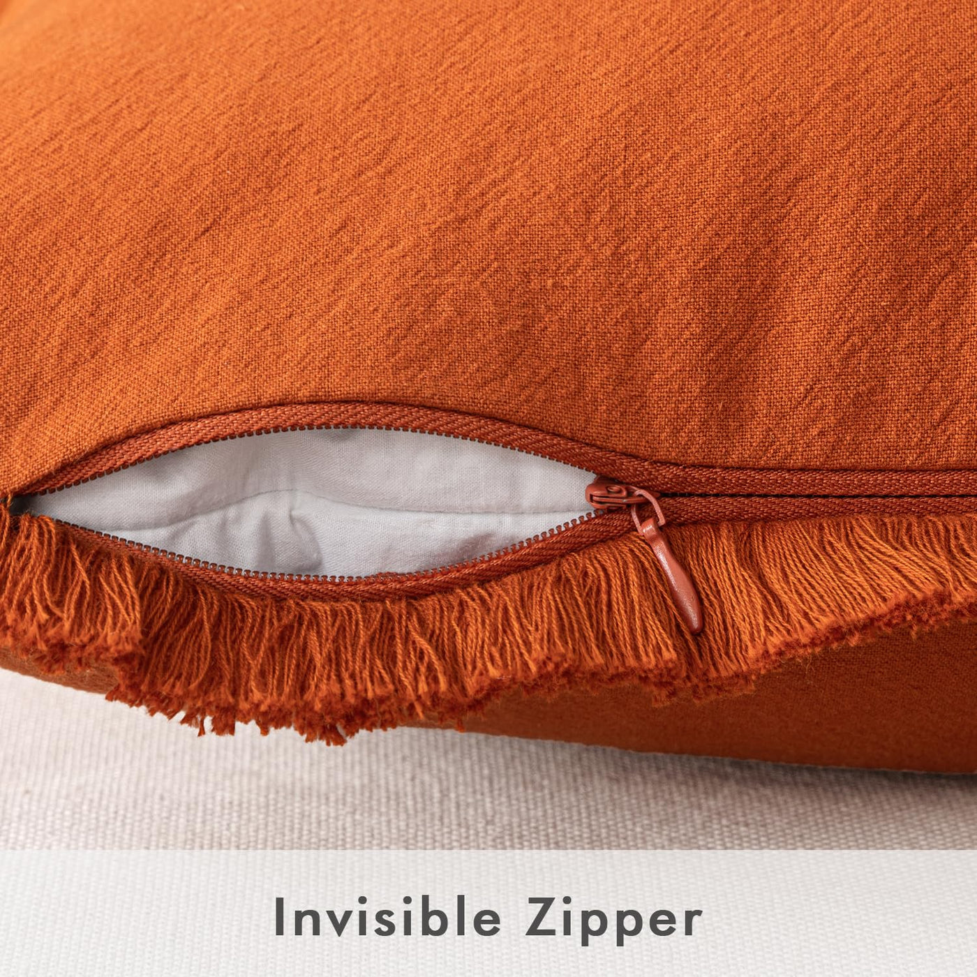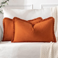 Miulee Pillow Covers Boho Farmhouse 12X20 Set Of 2 Decorative Orange Couch Pillow Covers With Fringe Chic Cotton Throw Pillows Home Decor Accents For Cushion Sof Bed Living Room