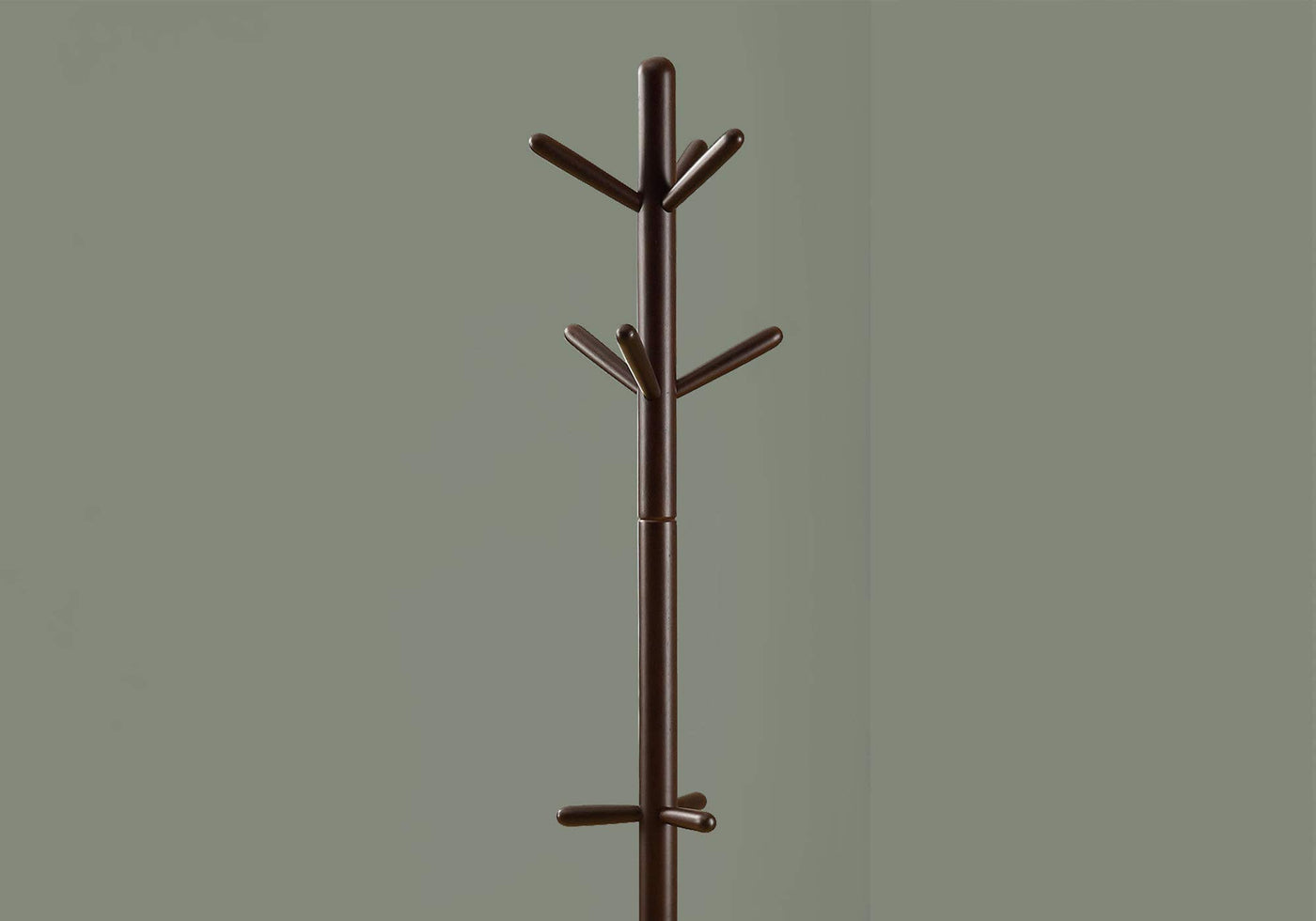 Organize your home with this contemporary solid wood coat rack. A beautiful lustrous cappuccino finish and a sturdy pedestal base brings plenty of stylish storage into your living space. Its simplicity makes it easy to create functionality in your entryway, hallway or living room. This triple tiered coat rack is ideal, convenient and a necessity for all.
