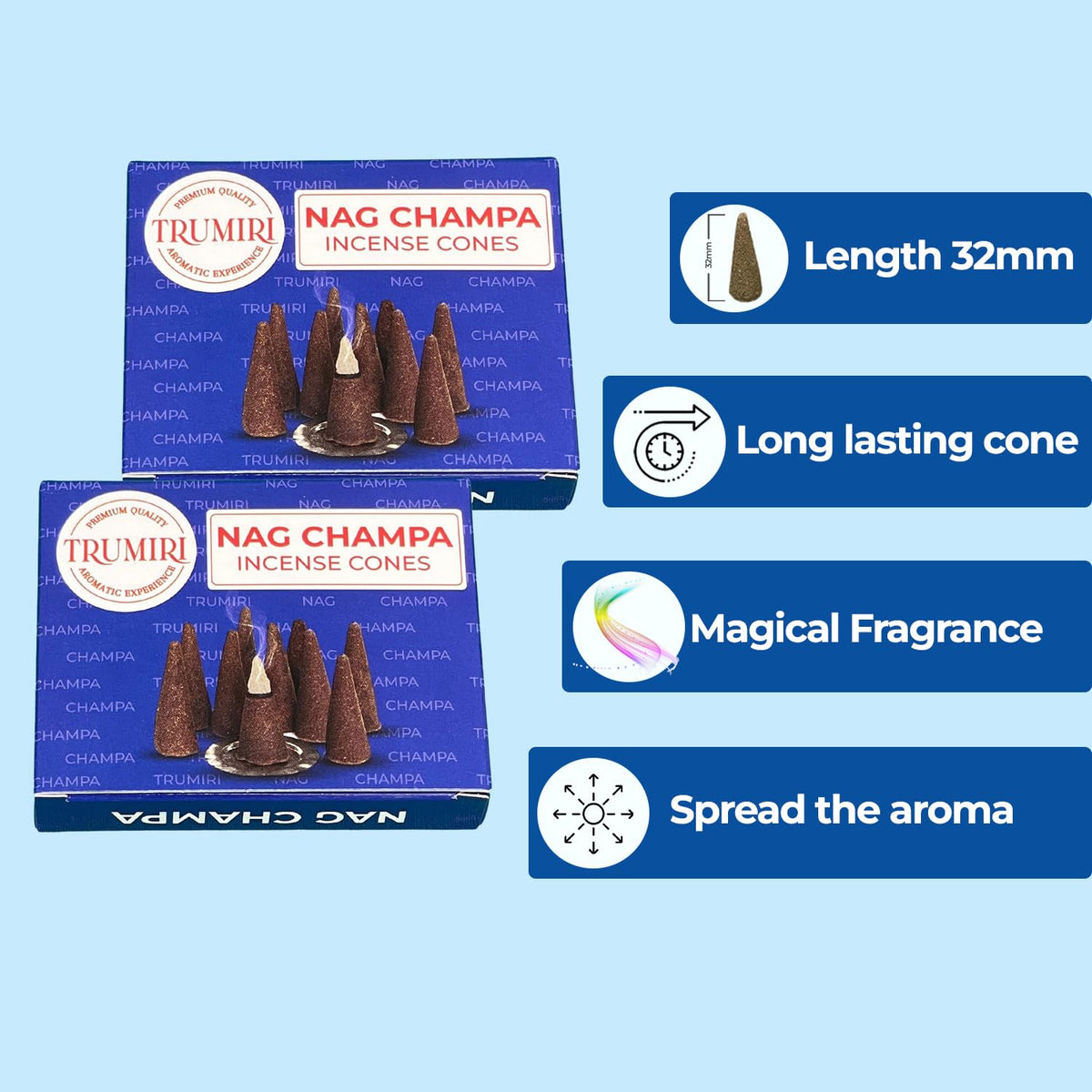 Nag Champa Incense Cones - Total 20 Cone Incense - Dual Pack Of 10 Insence Cones - Incense Cones Scented - Cone Incense Scents -