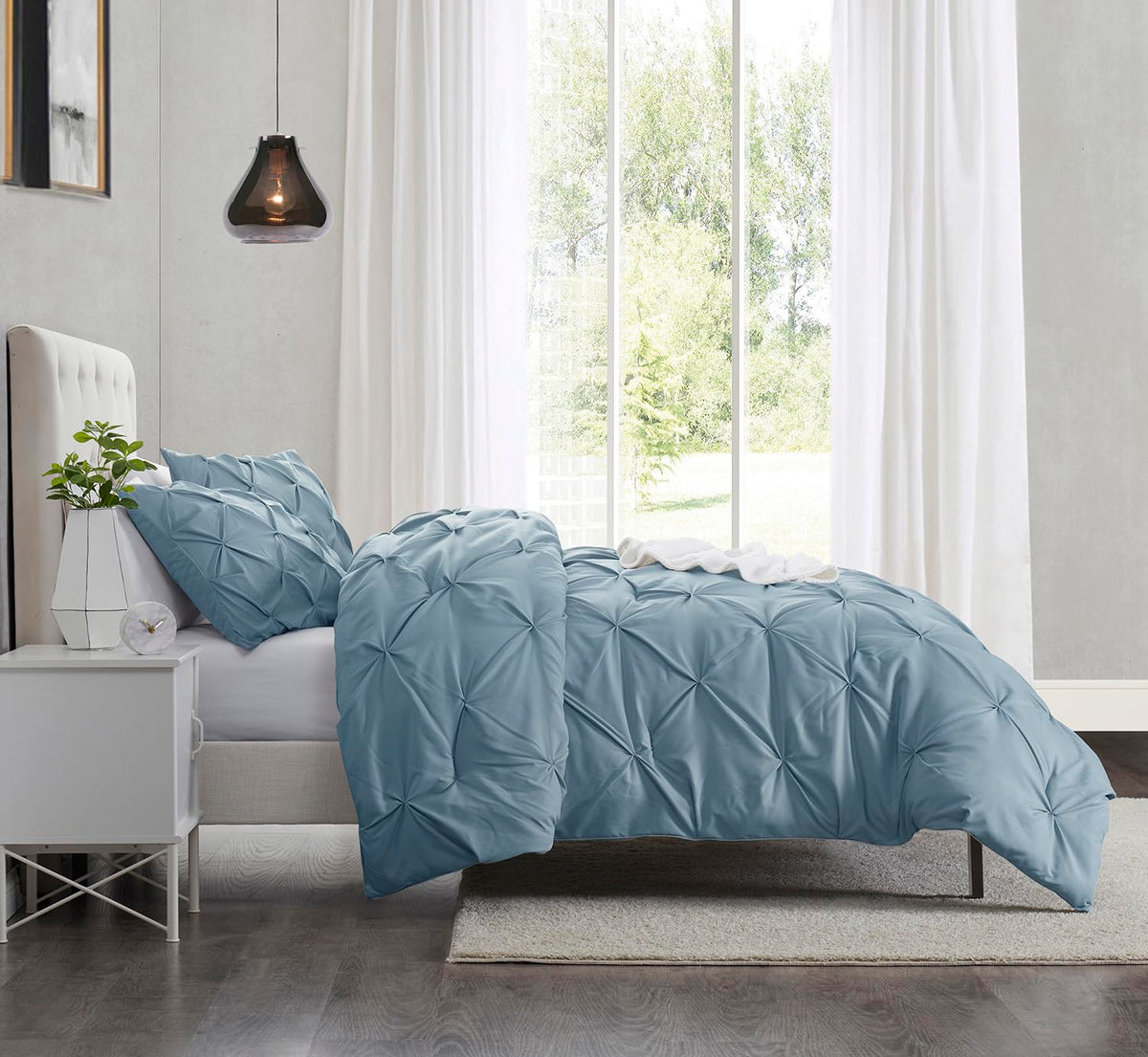 Nestl Stone Blue Duvet Cover Queen Size - Pintuck Queen Duvet Cover Set, 3 Piece Double Brushed Duvet Covers With Button Closure
