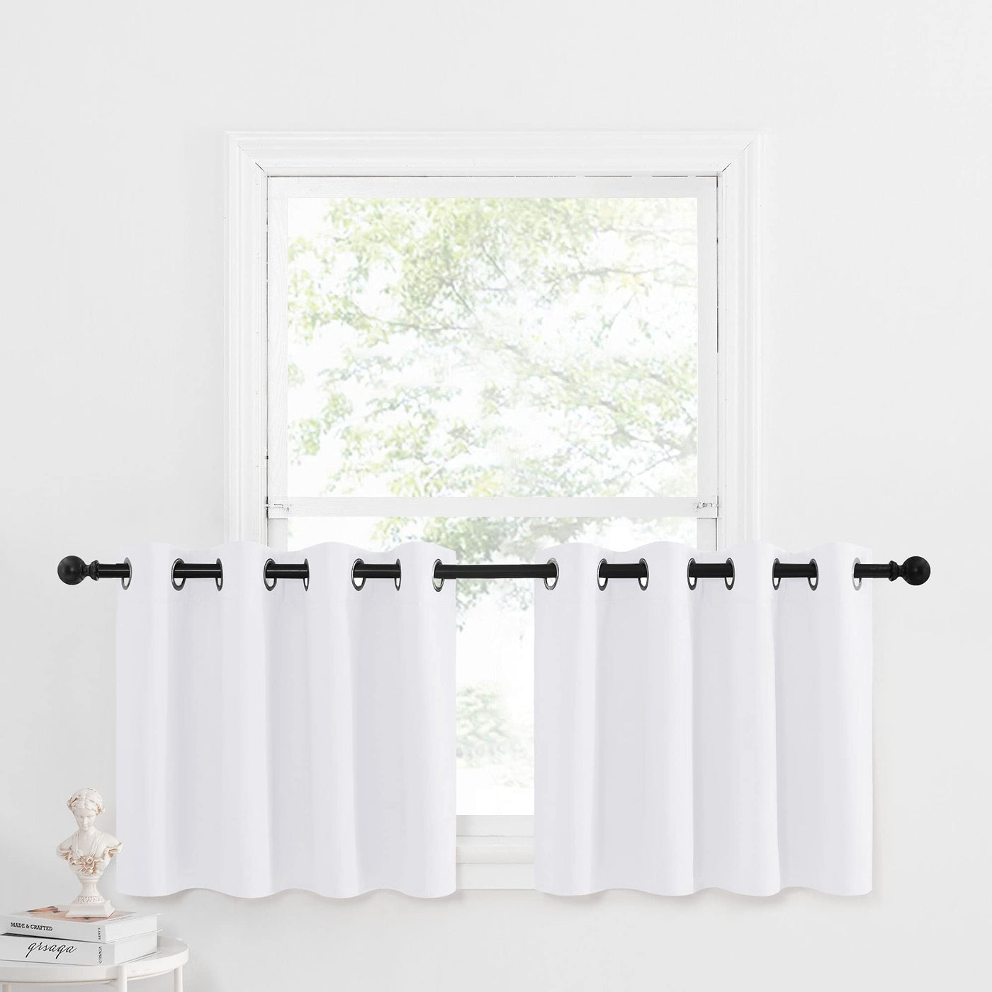 Nicetown 50% Blackout Tiers Small Curtains - Grommet-Top Design Room Darkening Window Treatment Drapes For Kitchen/Bathroom/Cafe/Dorm, 2 Panels, 52W By 24L 1.2 Inches Header, Pure White
