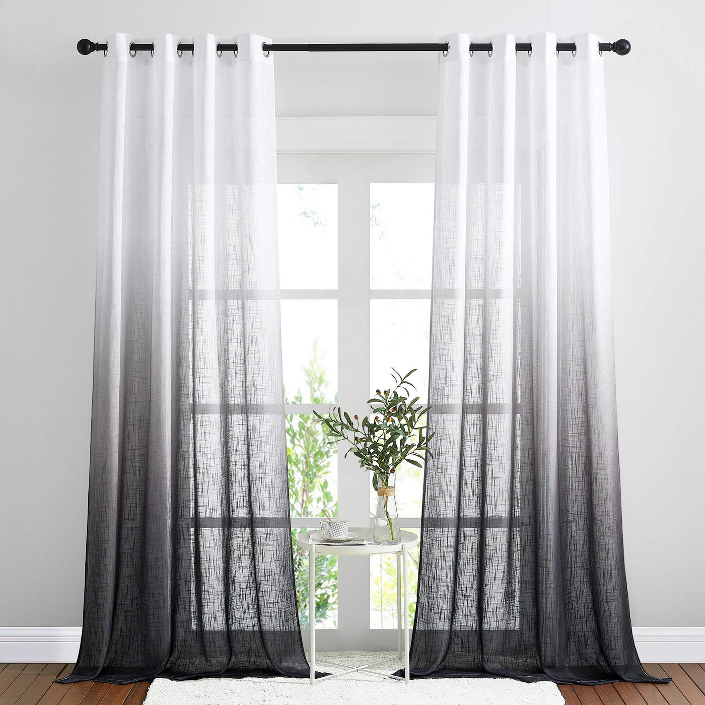 Nicetown Black Ombre Sheer Linen Curtains For Bedroom, Grommet Two-Tone Gradient Color Semi Sheer Window Treatments Privacy With