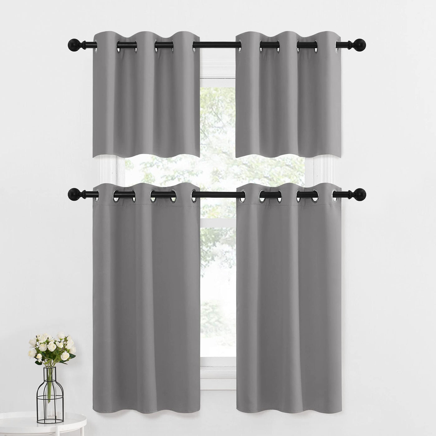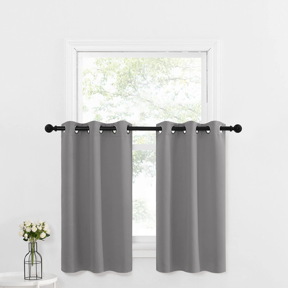 Nicetown Short Curtains Tiers For Small Window, Home Fashion Blackout Thermal Insulated Curtain Panels With Grommet Top For Cafe, Set Of 2, Silver Grey, W29 X L36-Inch With 1.2 Inches Header