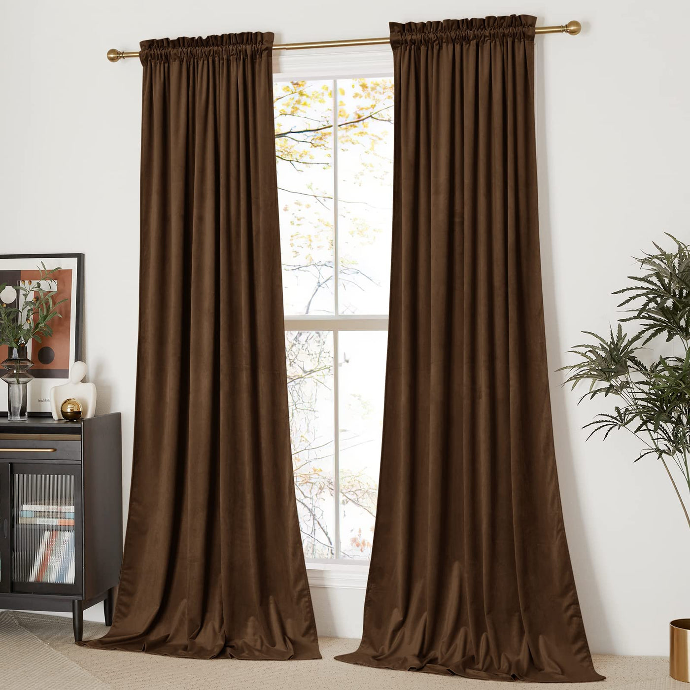 Nicetown Thermal Insulated Brown Velvet Curtains, Sound Reducing Heavy Matt Solid Room Darkening Drapes/Panels For Holiday (2 Pa