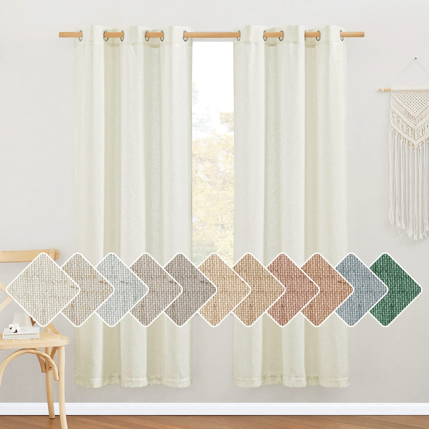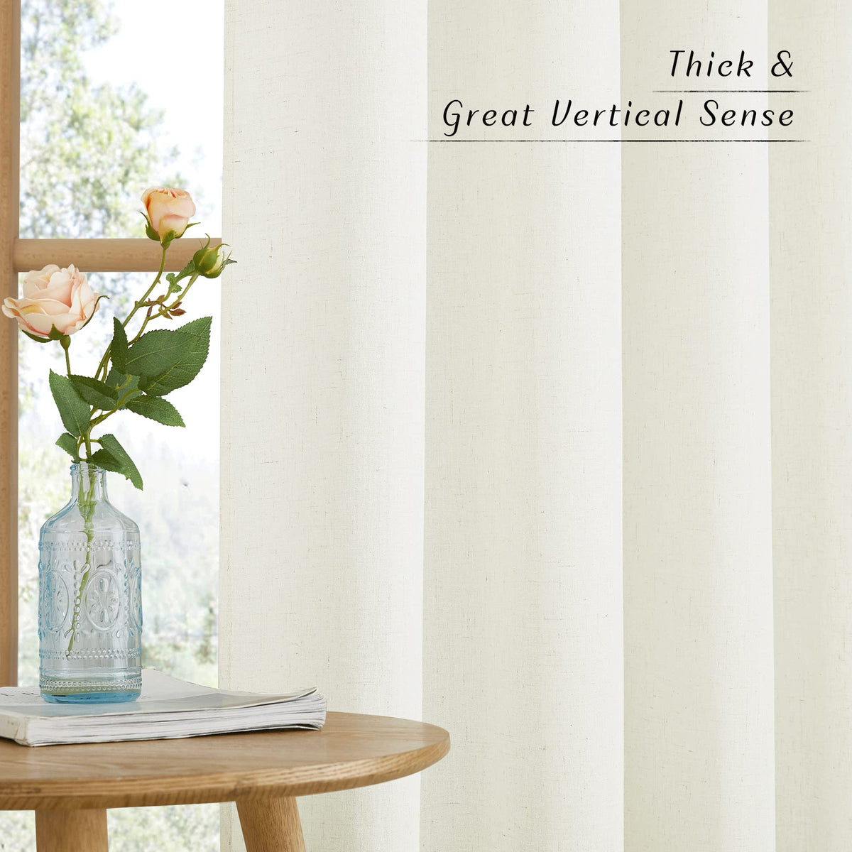 Nicetown Thick Linen Curtains 72 Inches Long, Grommet Privacy Window Drapes Linen Blend With Light Penetration Rustic & Casual For Bedroom/Living Room, Off White, W42 X L72, 2 Panels