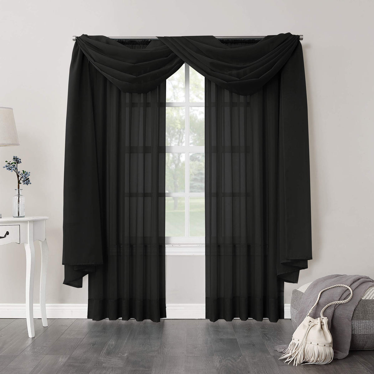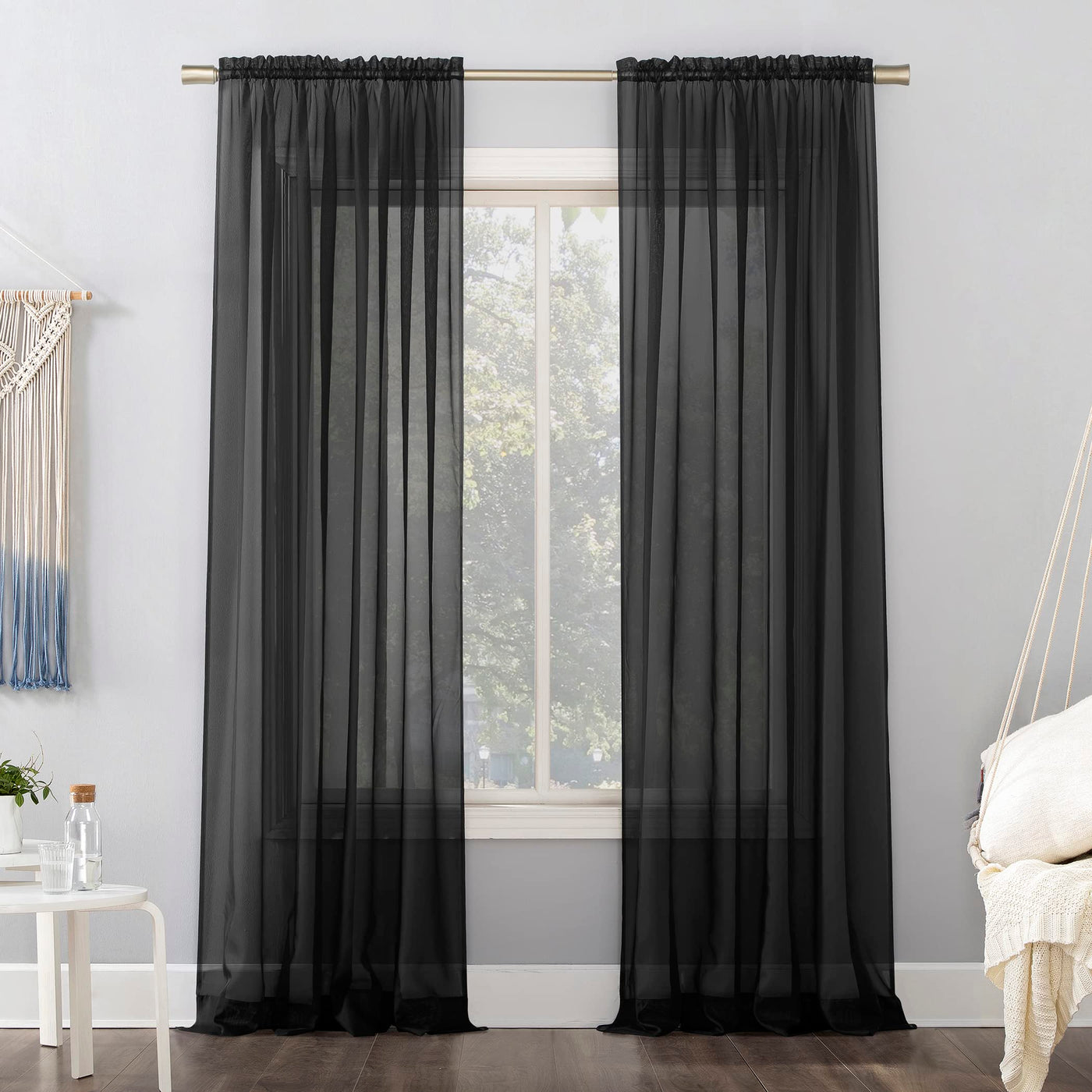 No. 918 53566 Emily Sheer Voile Rod Pocket Curtain Panel, 59'' X 95'', Black