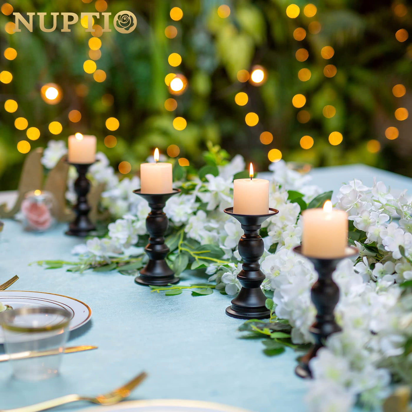 Q: Are these candle holders suitable for outdoor use?A: While the NUPTIO candle holders are made of metal and are lightweight, they are best used for indoor settings or covered outdoor areas to protect them from the elements.