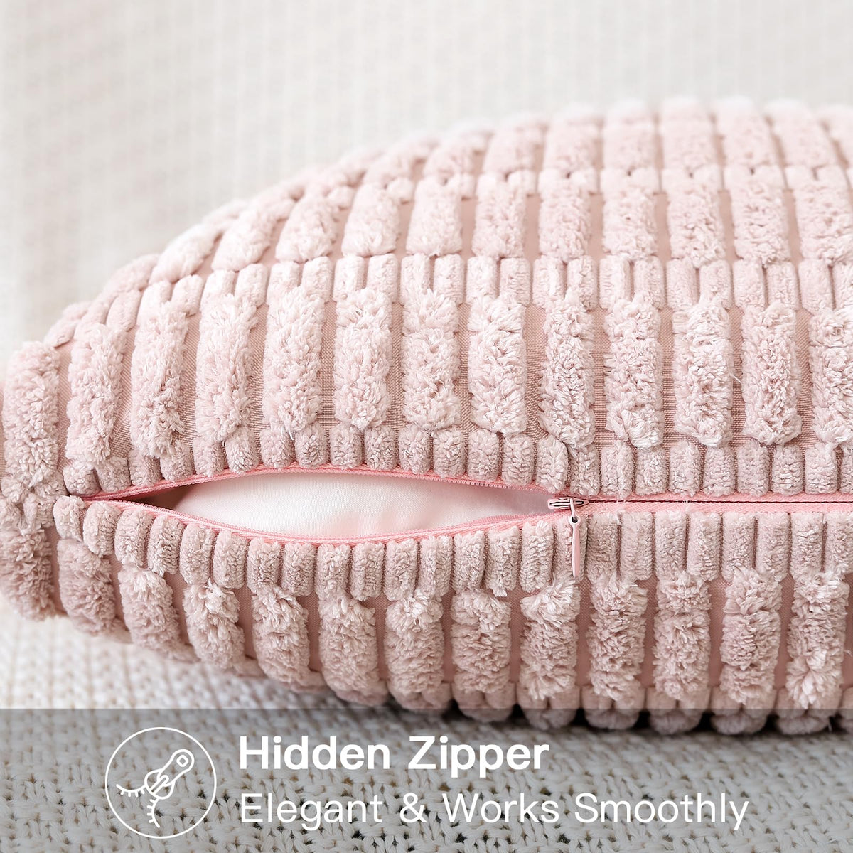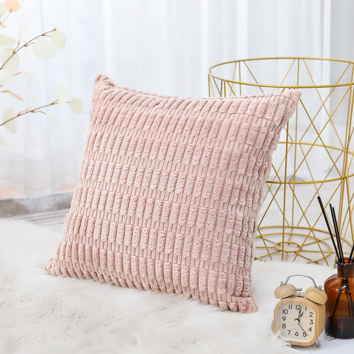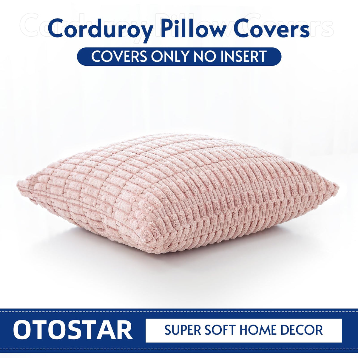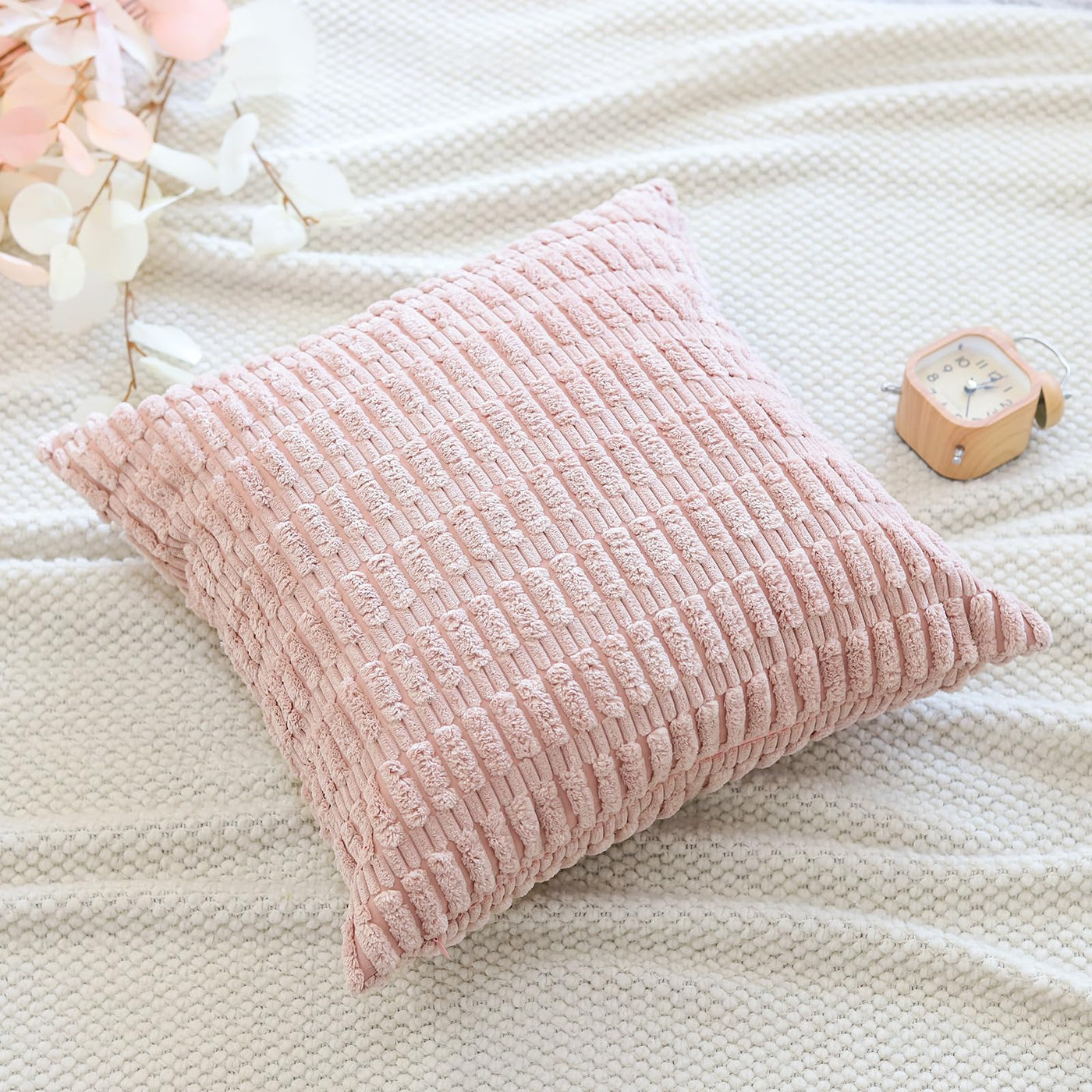 Otostar Corduroy Decorative Throw Pillow Covers 20X20 Inch Super Soft Boho Striped Square Pillow Covers Case Modern Cushion Covers For Sofa Couch Bedroom Car Decor Pink