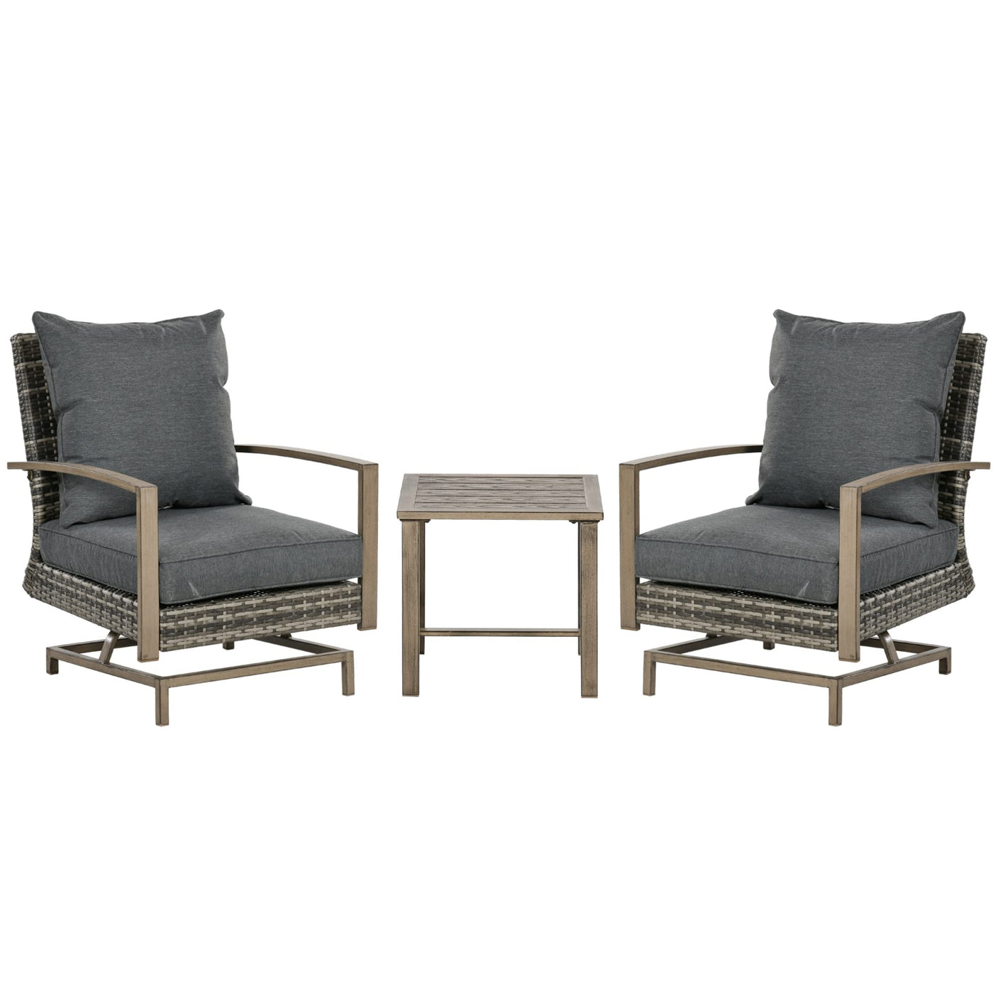Outsunny 3-Piece Patio Wicker Bistro Set With Cushions, Aluminum Frame Outdoor Pe Rattan Conversation Furniture With 2 Rocking Chairs, Slat Top Coffee Table For Porch, Backyard, Garden, Dark Gray