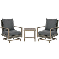 Three-Piece Rattan Set: This Pe Plastic Rattan Bistro Set Includes Two Rocking Chairs And A Slatted Coffee Table. Enjoy The Outdoors With A Friend And Create A Cozy Lounging Area On Your Patio, By The Pool, Or In Your Garden, Regardless Of The Space Available. | Rocking Chairs: Experience The Cozy Comfort Of Indoor Rocking Chairs In Your Outdoor Lounge Space With Our Backyard Bistro Furniture Set. This Set Includes Two Matching Porch Rockers, Allowing You To Relax And Unwind Outdoors. | Woodgrain Coffee Table: Elevate Your Outdoor Dining And Entertaining With Our Versatile Center Coffee Table. It Offers Ample Space For Meals, Drinks, And Decorations. Perfect For Hosting Barbeques And Parties, Its Slatted Surface Drains Rainwater While Anti-Slip Footpads Provide Stability And Protection For Various Surfaces. | Made Outdoor In Mind: Crafted From Pe Plastic Rattan, Our Front Porch Furniture Combines The Timeless Appeal Of Handwoven Wicker With Enhanced Water And Weather Resistance. Its Water-Safe Aluminum Frame Provides Lightweight, Durable Furniture Designed For Outdoor Use. Additionally, The Zippered Cushion Covers Can Be Easily Removed For Convenient Spot Cleaning. | Patio Seating Info: Armchair Dimensions: 26.75' W X 28' D X 32.75' H. Coffee Table Dimensions: 19.75' W X 19.75' D X 17.75' H. Weight Capacity: 264 Lbs. (Chair), 66 Lbs. (Table). Assembly Required.