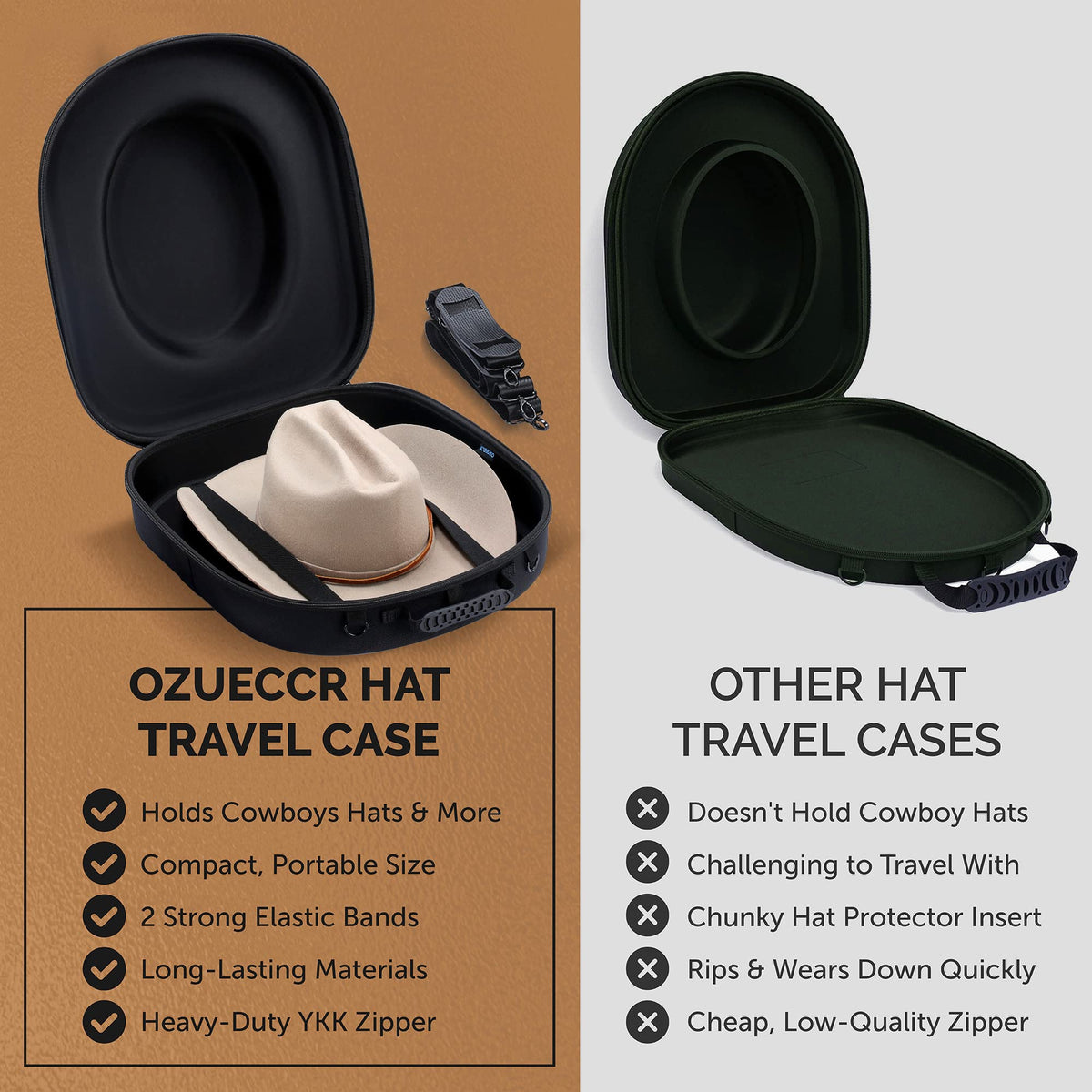 Ozueccr Large Black Cowboy Hat Travel Case ? Crushproof Carrier with Handle, Shoulder & Luggage Strap for Travel & Storage