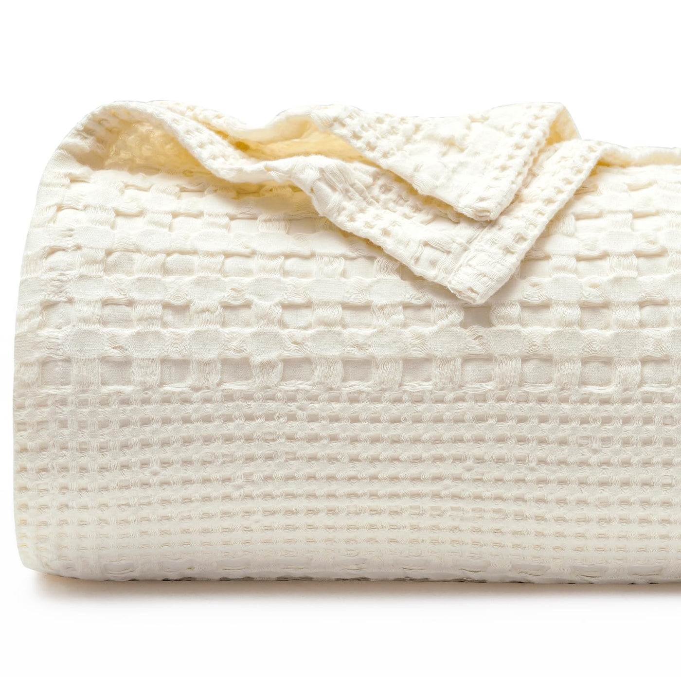 Phf 100% Cotton Waffle Weave Blanket Queen Size - Washed Soft Lightweight Blanket For All Season - Breathable And Skin-Friendly
