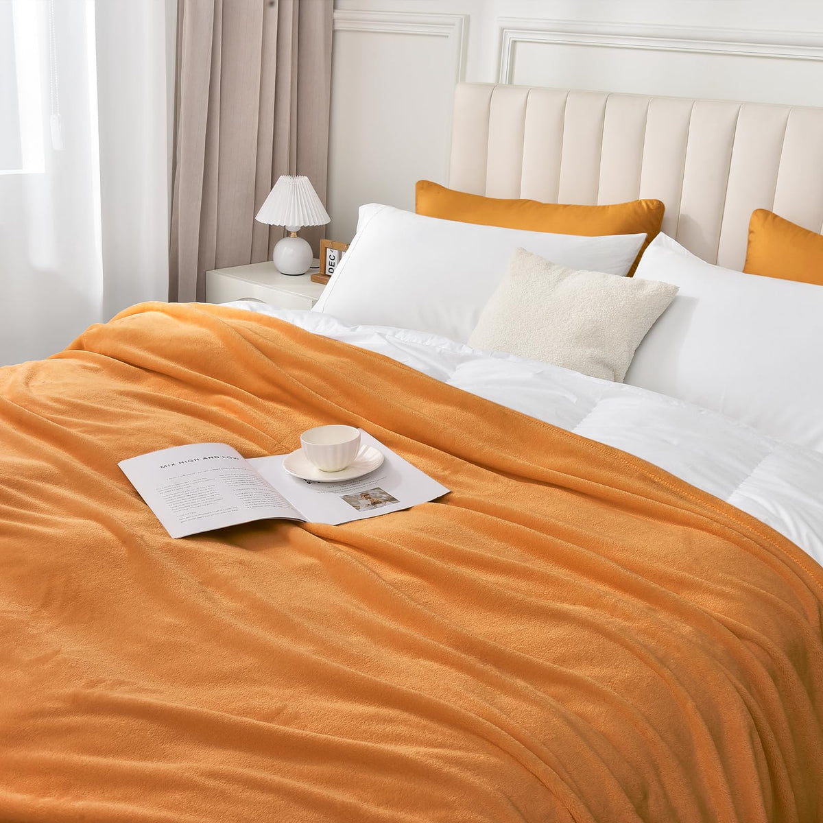Phf Ultra Soft Fleece Blanket Twin Size, No Shed No Pilling Luxury Plush Cozy 300Gsm Lightweight Blanket For Bed, Couch, Chair, Sofa Suitable For All Season, 66' X 90', Pumpkin Orange