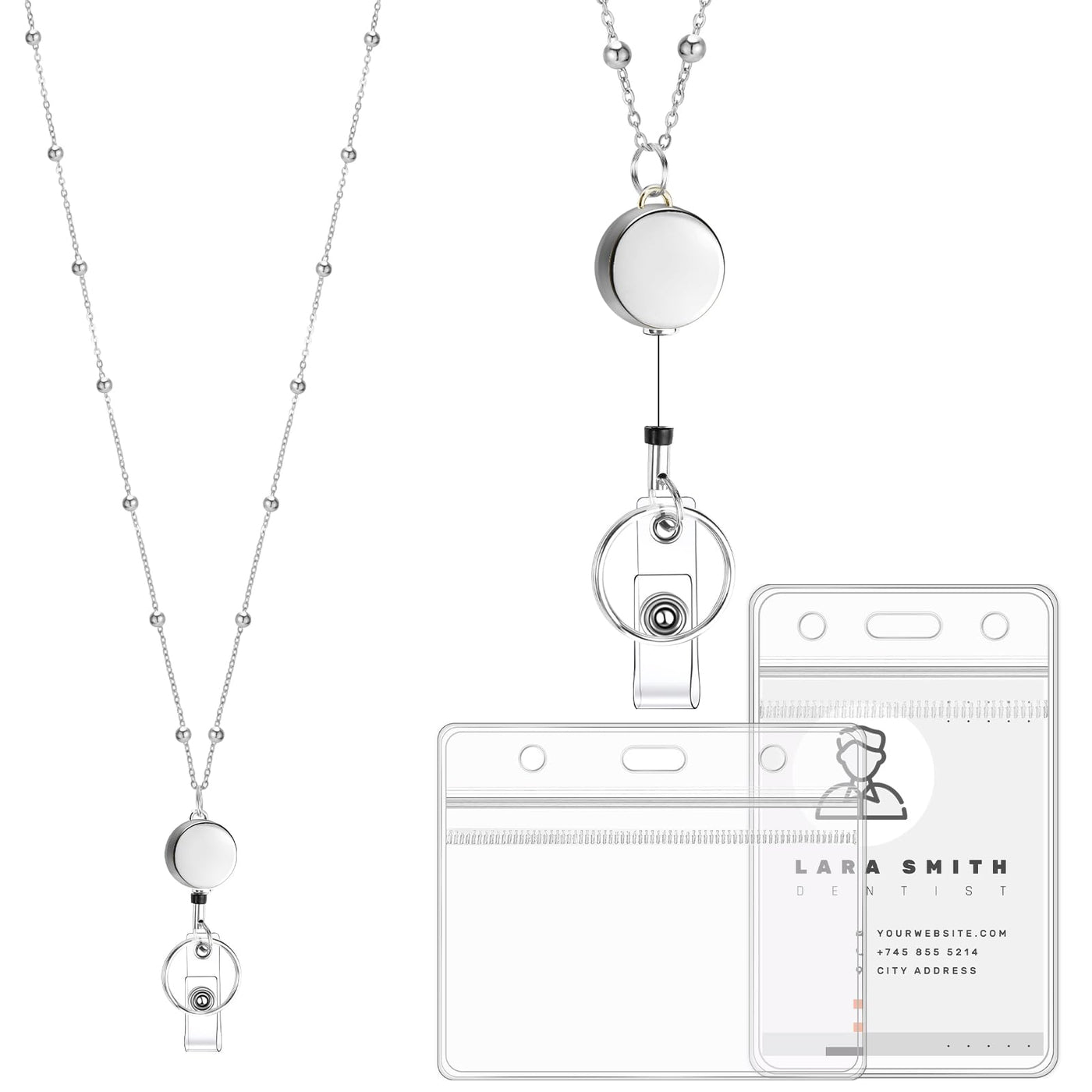 Specifications:Color: Silvermaterial: Stainless Steelsize: As Shown In The Picturefeatures:1. Work Badge Holder Lanyard Is Suitable For Carrying Work Cards, Room Cards, Keys, Etc., Suitable For Different People, With Retractable Badge Reel, And Can Be Easily Scanned Without Removing The Card2. Necklace Lanyard Is Beautifully Designed And Easy To Match With Various Work Clothes, Business Clothes, Casual Clothes, Etc. It Is Small And Chic, Turning Ordinary Necessities Into Fashionable Necklace Accessoriespackage Includes:1 Id Lanyard2 Waterproof Badge Holder