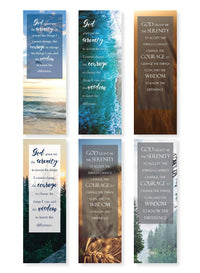 Share Peace With Serenity Prayer Bookmarks. Bulk Package Of 48 Featuring 6 Beautiful Nature Inspired Designs, 8 Of Each. Shorter Version Of The Prayer On The Front Of Card, Full Version On The Back. Measures 2.25 X 6.5 Inches On Heavy 110# Paper. A Perfect Inspiring Prayer Card To Share With Others. Professionally Printed In Usa.