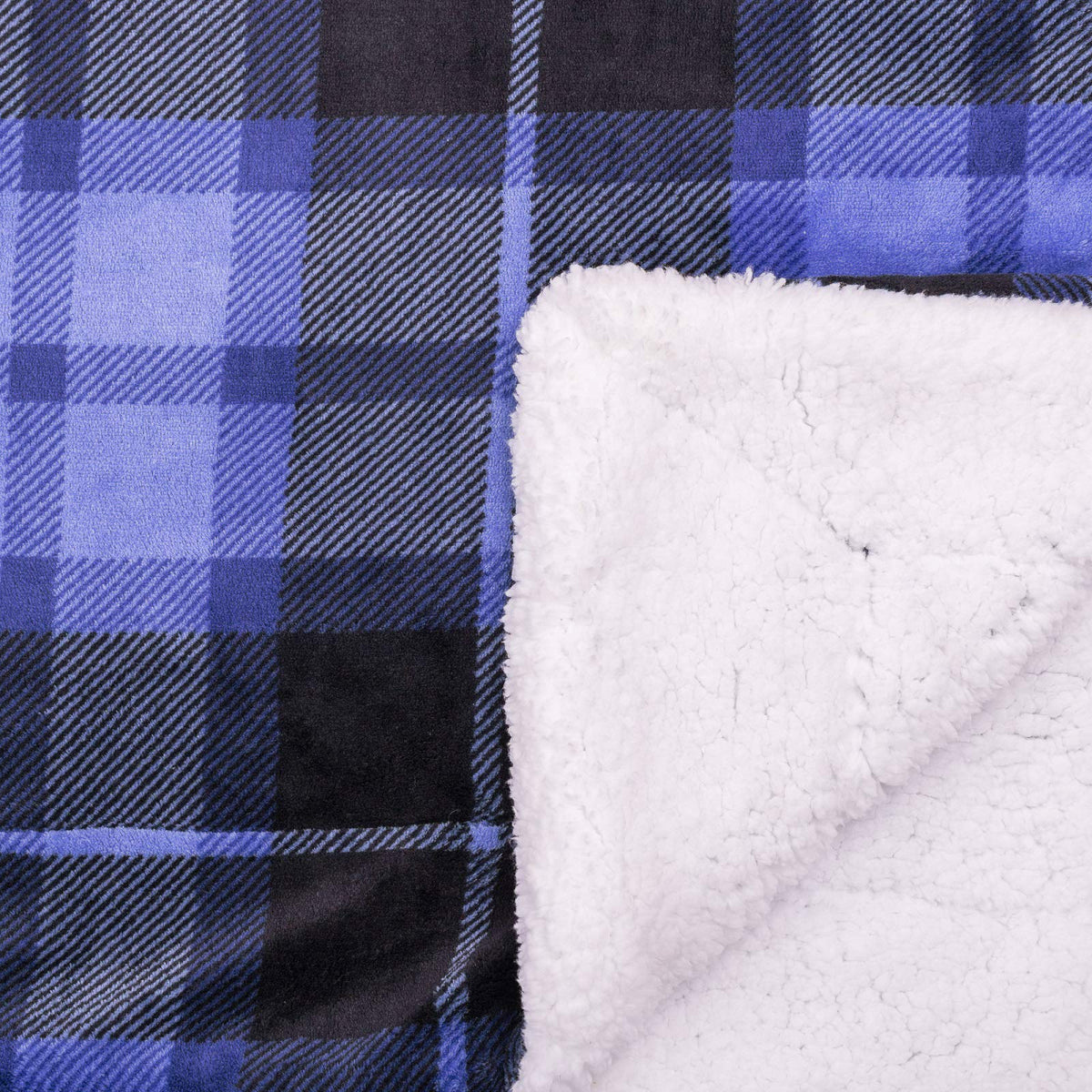 Sochow Sherpa Plaid Fleece Throw Blanket, Double-Sided Super Soft Luxurious Bedding Blanket 90 X 90 Inches, Blue