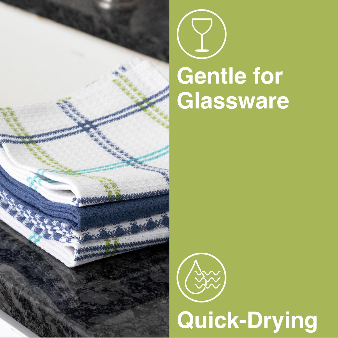 Elevate your kitchen cleanup routine with the T-fal Flat Waffle Dish Cloths. Designed to tackle spills, messes, and everyday cleaning tasks with ease, these dish cloths are a must-have addition to any home.Crafted from premium materials and reinforced stitching, these dish cloths are built to withstand daily use and frequent washing. They'll hold up to tough cleaning tasks and maintain their quality wash after wash. No ordinary dish rag, these highly absorbent kitchen dish cloths are well-crafted from 100% high-quality waffle-weave cotton, allowing you to quickly and efficiently soak up spills and dry dishes with ease. Say goodbye to soggy messes and hello to sparkling clean surfaces. Each textured dish cloth is highlighted by a wondrous waffle weave that allows water to wick along the surface and enables proper airflow that results in quick drying.If you're looking for the perfect dish wash cloths for wiping down countertops, drying dishes, or cleaning up spills, these versatile dish cloths are up to the task. Each waffle weave dish cloth measures 12 in. by 13 in. (30 cm by 33 cm). This snazzy dish cloth set comes with 2 checked dish cloths, 1 striped kitchen dish cloth, and 1 solid dish cloth, all in your choice of color that is complementary to your style. With their compact size, these dish cloths are easy to store in any kitchen drawer or cabinet. Keep them close at hand for whenever you need them, without taking up valuable storage space.The all-purpose all-star of any household, this set of four T-fal Flat Waffle Dish Cloths ensures a dependable resource is always close at hand.