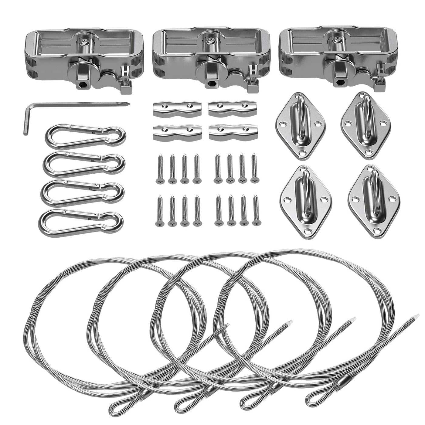 Tang Sun Shade Sail Hardware Kit With 24' (6'X4) Cable Wire Rope, Rectangle Shade Sail Installation Kit For Deck Patio Yard Gard