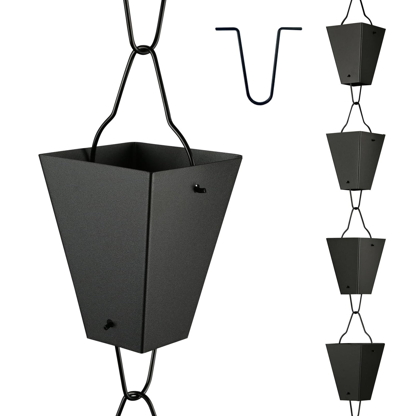Te Deum Square Link Rain Chain, 8.5 Feet Length, 3.7Inch Big Size Cup, Black Powder Coated, Functional And Decorative Replacemen
