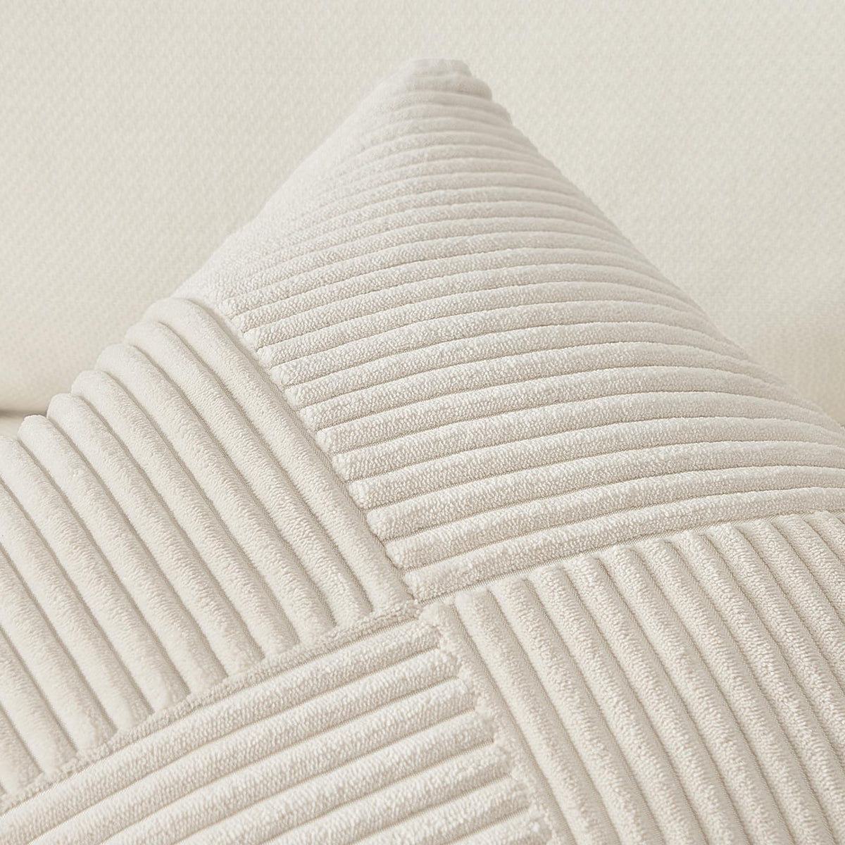 Topfinel 12X12 Inch Decorative Pillow Covers Set Of 2 For Couch Sofa Bed, Soft Corduroy Striped Patchwork Cream White Throw Pill