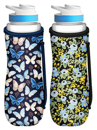 Toykee Water Bottle Sleeve For Cirkul 22 Oz - 2 Pack Bottles Cover Holder Carrier Bag With Side Handle Blue Purple Marble Print