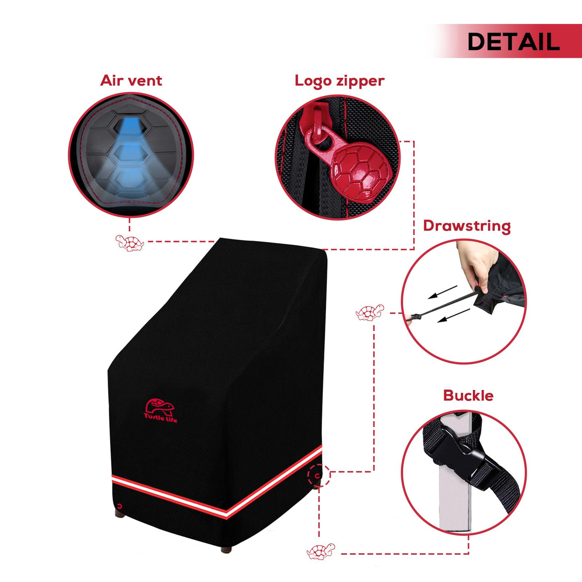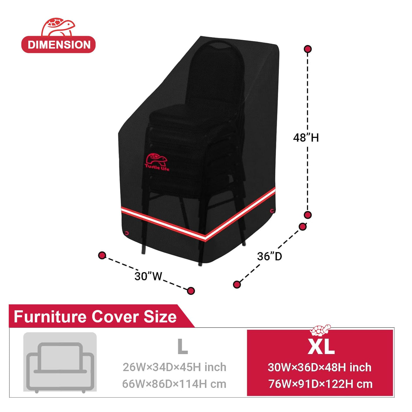 Turtle Life Patio Stackable Chair Cover, Heavy Duty Waterproof Outdoor Furniture Stacking 6-12 Chairs Covers, Anti-Fading Cover For Bar Stool Chair, Black, 30' W X 36' D X 45' H