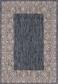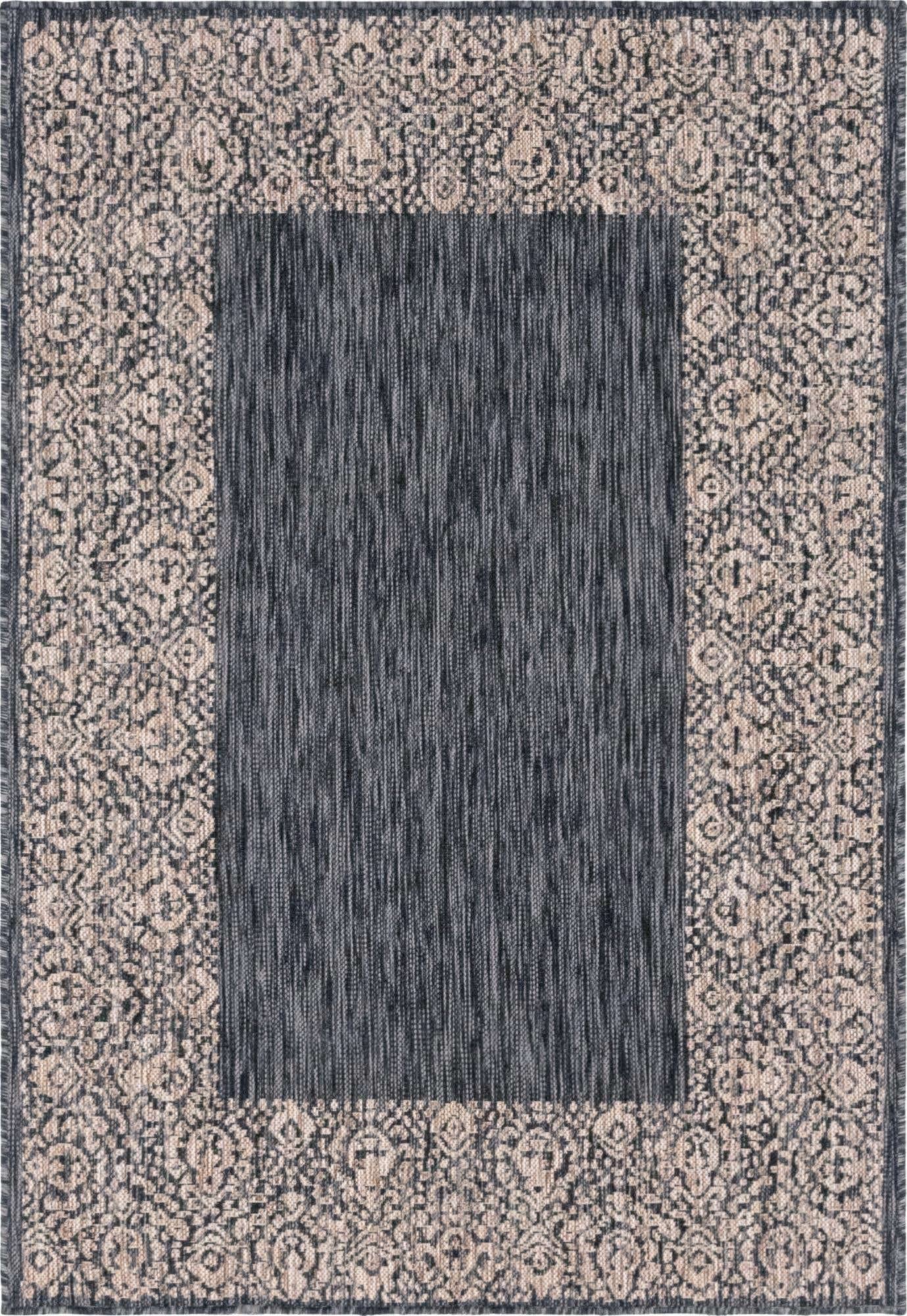 Unique Loom Outdoor Border Collection Area Rug - Floral Border (4' 1' X 6' 1' Rectangle, Charcoal Gray/ Beige)