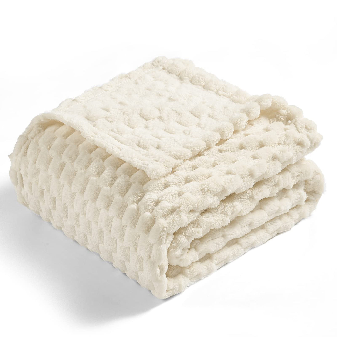 Vessia Flannel Fleece Throw Blanket For Kids And Adults, 3D Jacquard Cream Fuzzy And Warm Blanket For Couch,Sofa,Bed,Chair, 300G