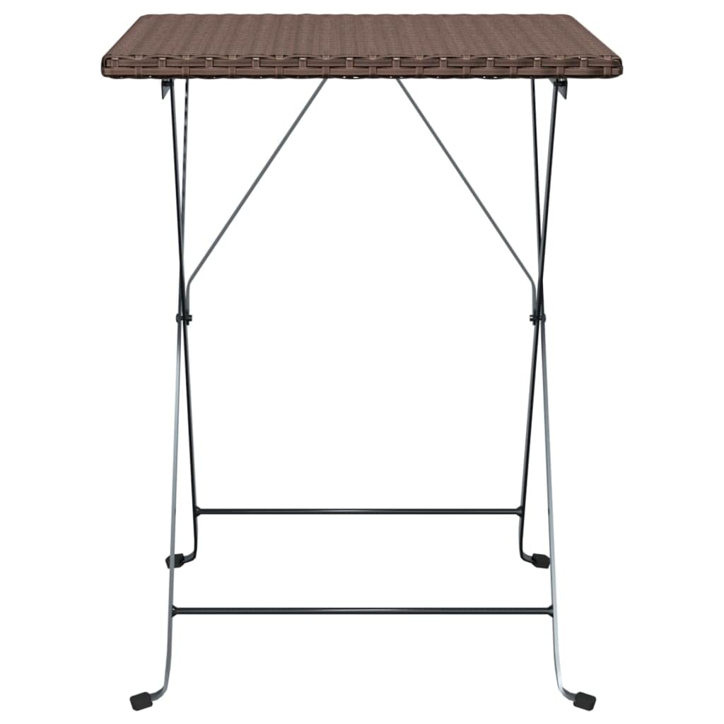 vidaXL Modern Folding Bistro Table in Brown - 21.7"x21.3"x28" PE Poly Rattan, Weather Resistant with Powder-Coated Steel Frame for Patio or Balcony