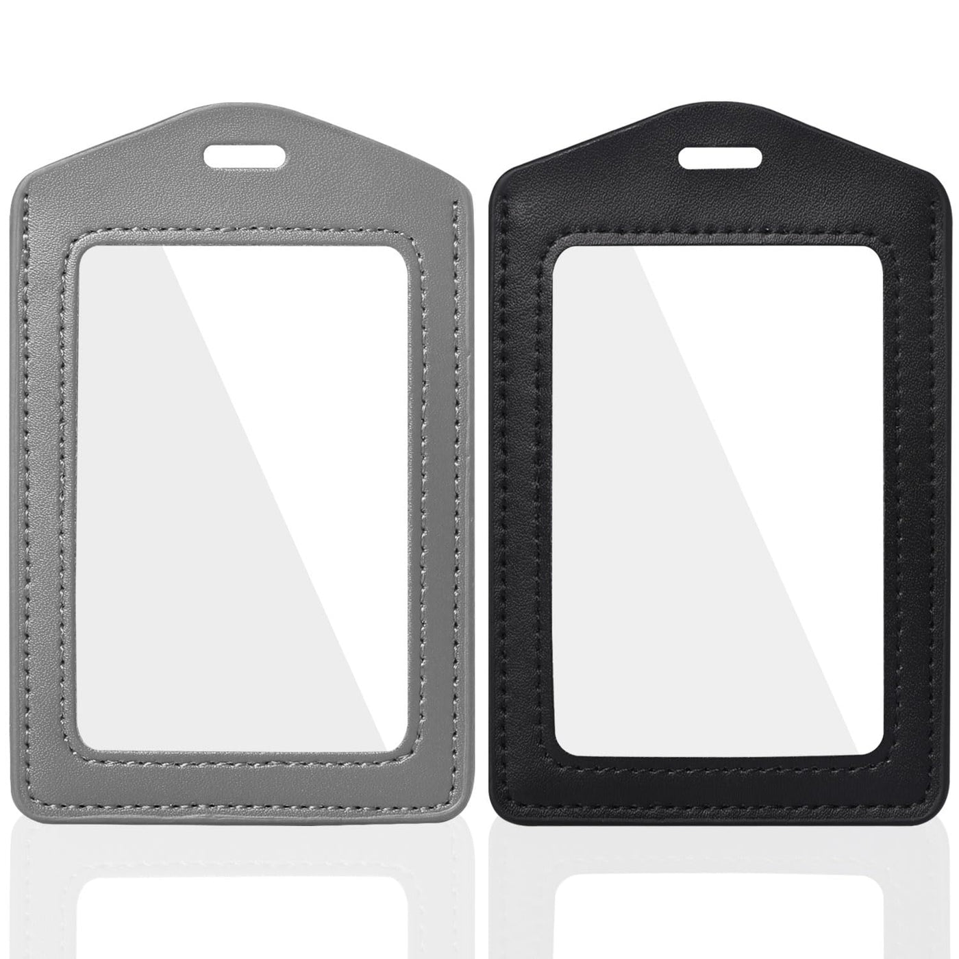 Vin Beauty 2 Pack Genuine Leather Id Badge Holders, Vertical Id Card Holders With Double-Side Clear Window, Waterproof Name Badg