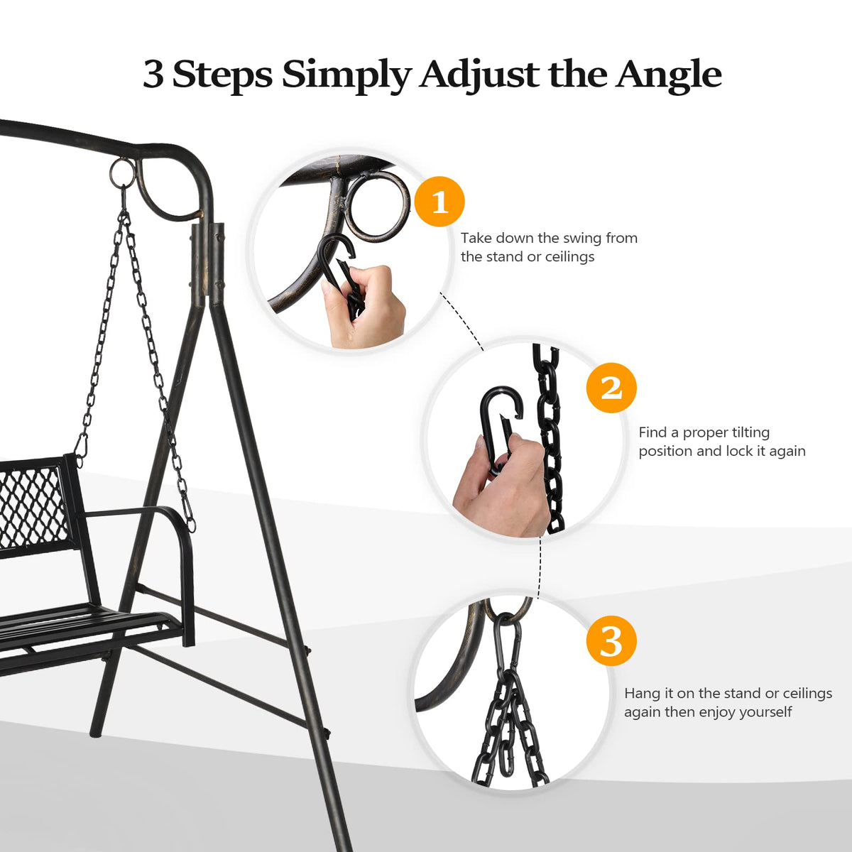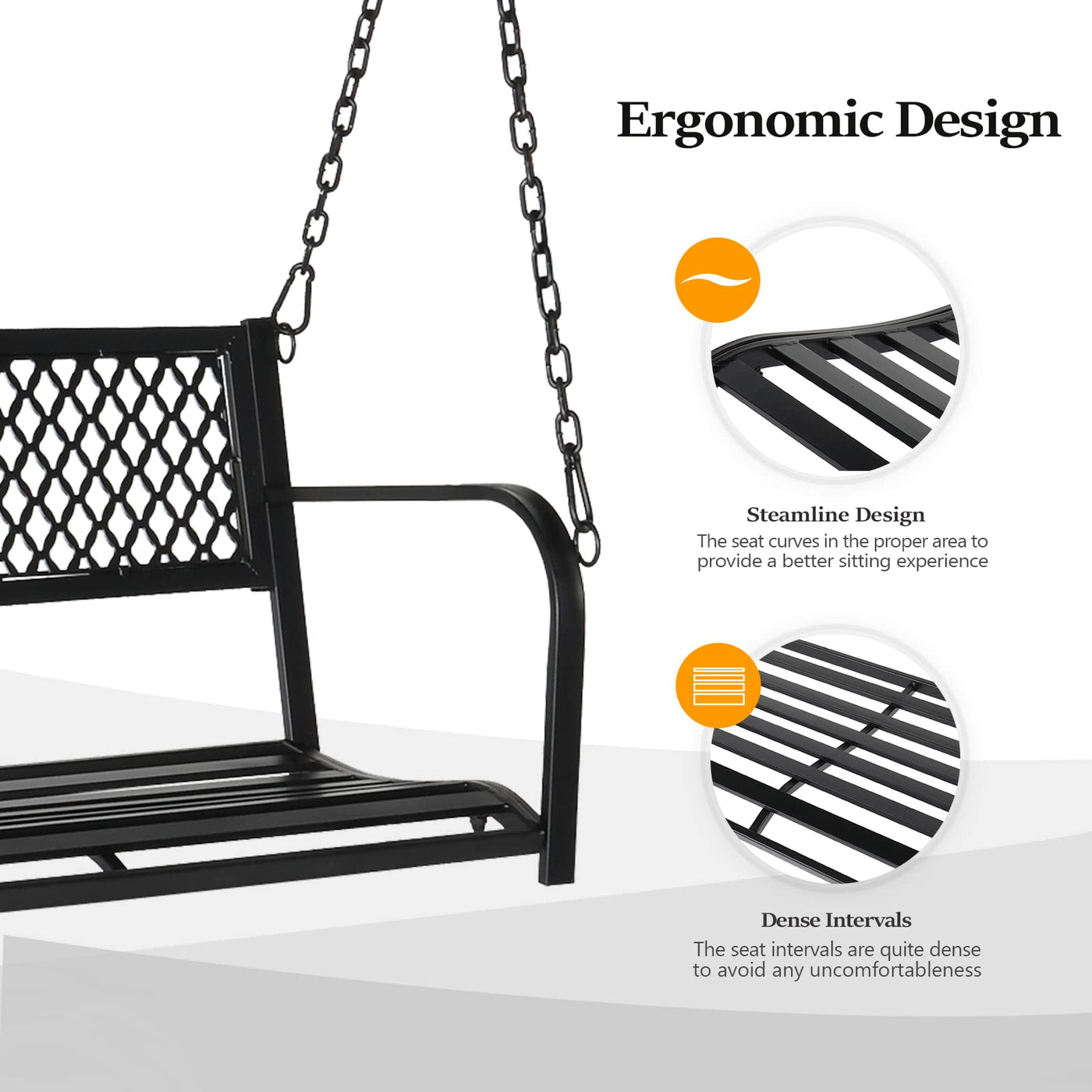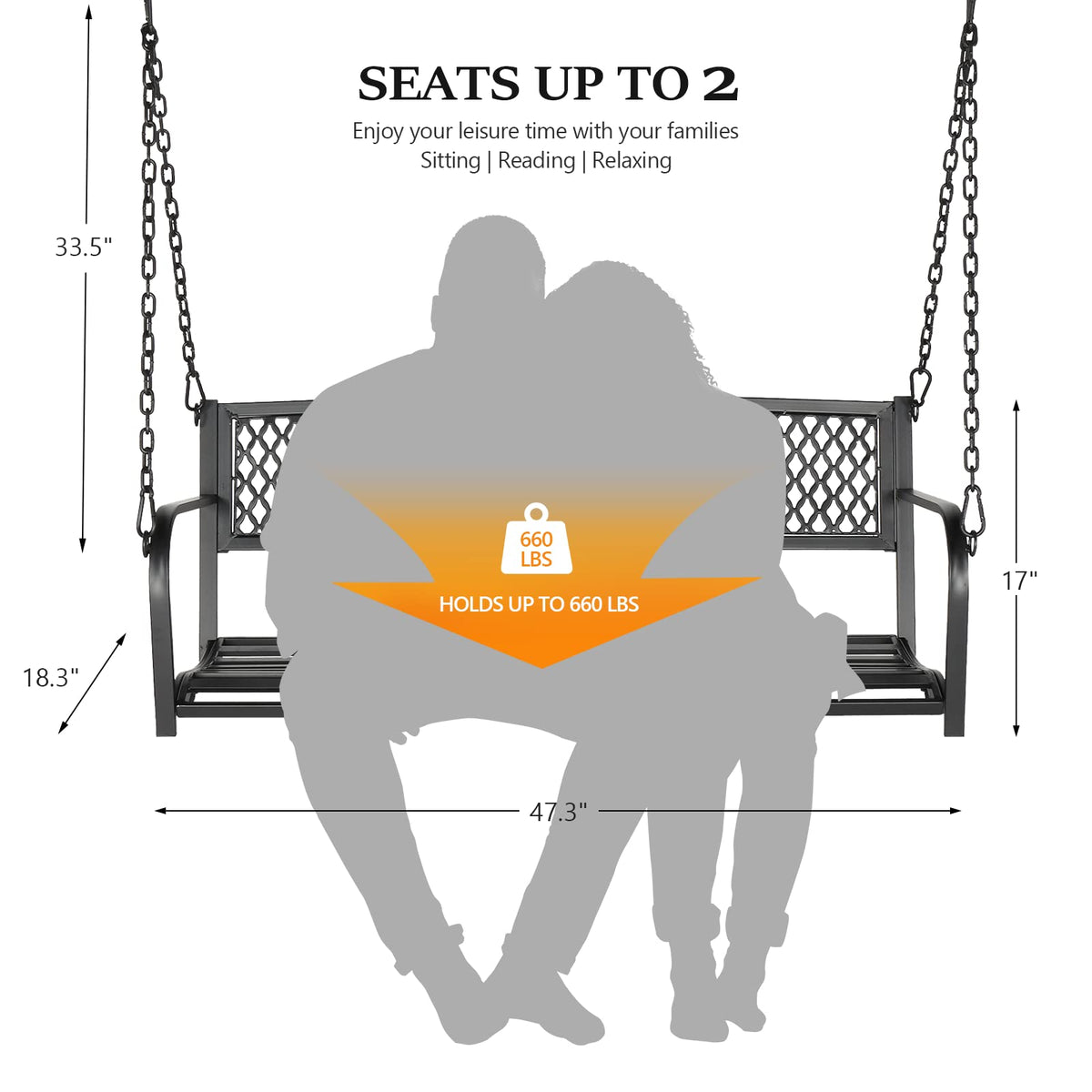Vingli Upgraded Metal Patio Porch Swing, 660 Lbs Weight Capacity Steel Porch Swing Chair For Outdoors, Heavy Duty Garden Swing Bench For Gardens & Yards (Pattern 2)